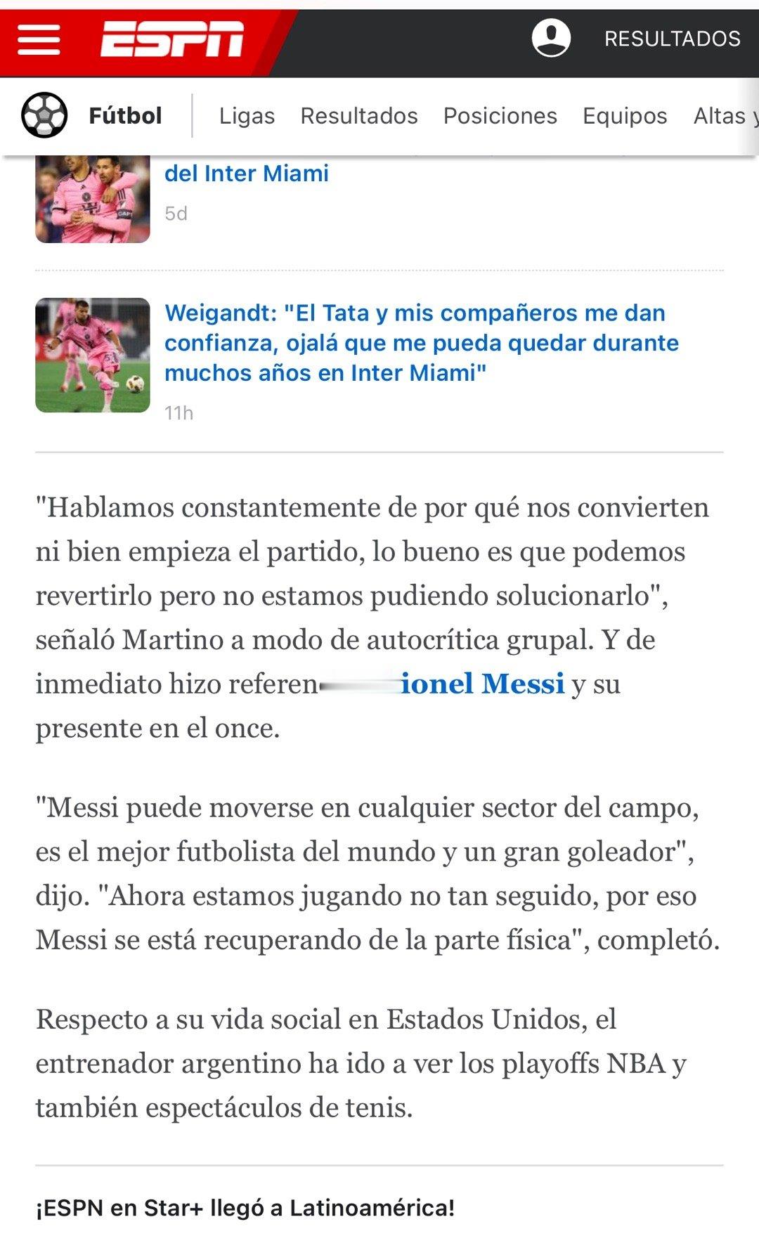 迈阿密主帅马蒂诺出席迈阿密国际vs纽约红牛赛前发布会,称赞了梅西的表现🎙️: