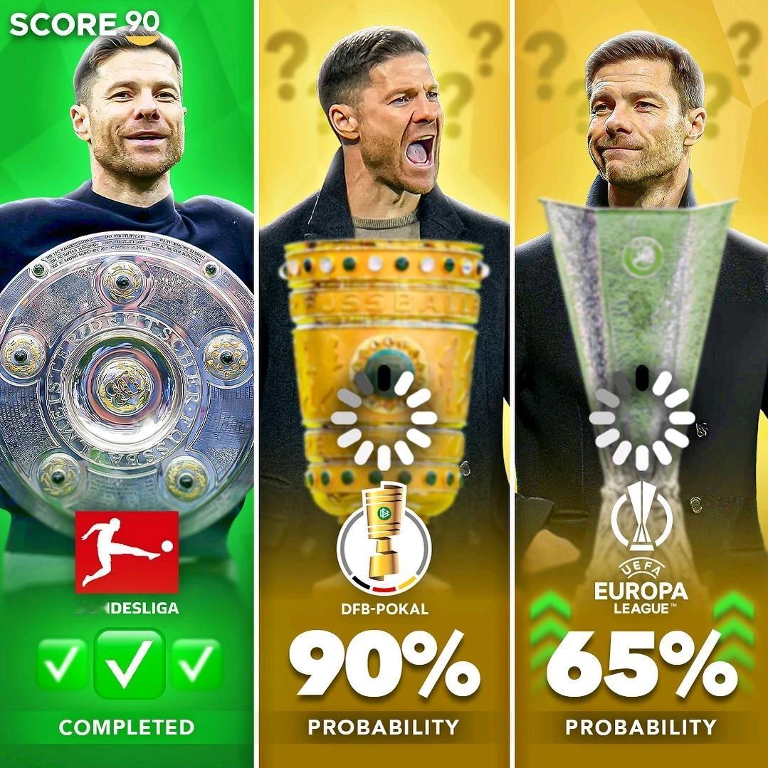 勒沃库森恐怖的47场不败!德甲、欧联杯、德国杯三线单赛季39胜8平,勒沃库森这状