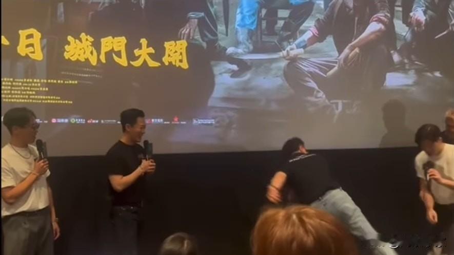 九龙城寨之围城|伍允龙回应切磋事件:好明显这位观众看得太投入 新片《九龙城寨之围城》在五一劳动节上映,截至昨日(5月4日)上映4天票房突破1500万港元,主创团队包括林峯、伍允龙、胡子彤、张文杰及乔靖夫,昨日冒着红雨警报及恶劣天气,去到各大戏院谢票,答谢观众支持,更有韩国观众捧场支持。 昨日谢票时,有热爱武术的观众与伍允龙切磋武艺,成为网上热搜焦点,伍允龙对此回应:「昨晚谢票事件,多谢大家关心,我没事的,只是一下没防备被推低,好明显这位观众看得太投入,以为我是王九(戏中角色),今次演技都有些突破,透过这件事知道很多网民、朋友及观众都很关心我,令到我很窝心,现在大家应将焦点放在电影《九龙城寨之围城》上,留意我的角色王九,多谢大家。」 昨日观众见到演员们现身谢票皆表现兴奋,有观众向林峯送上戏中的卡通面具及朱古力眼镜,林峯即席戴上娱宾,众演员亦分享,原来此场戏各人的面具是自己选择,张文杰说:「我哋该场出场动作都系自己拣。」林峯透露:「打麻雀嗰场戏都系冇剧本,仲要导演同我都唔识打麻雀,好彩有技术指导(指着胡子彤),场戏系交待四兄弟生活上的事情。」