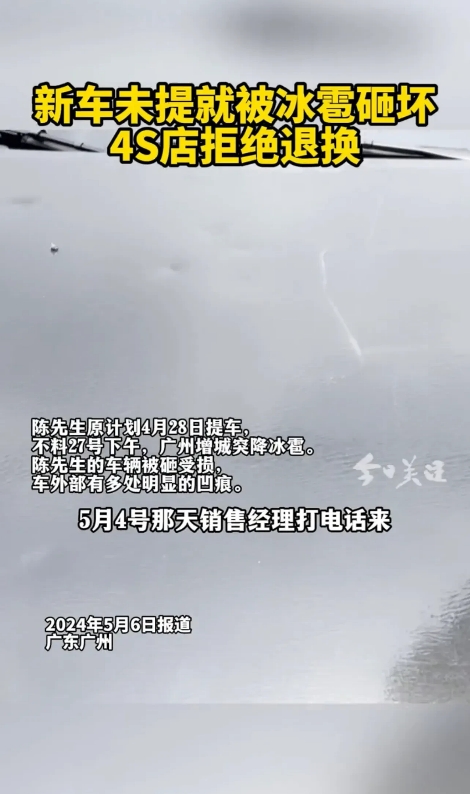 可谁也没有想到的是,4月27日下午,当地下起了冰雹导致陈先生所预订的那辆新车受损。