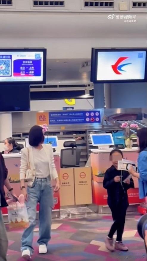 💖顶流视后内地机场被偶遇竟拒绝与女孩合照,展现真性情一面吓坏人 💖视后佘诗曼凭住去年热播的无线台庆剧《新闻女王》入面饰演Man姐文慧心一角,成为了剧迷的焦点,令她人气急升,大受欢迎,她还凭该角色赢得这一届无线万千星辉颁奖礼的视后。即使剧集播完后,这股Man姐热仍未曾减退,佘诗曼无论在香港或是内地均人气高企,且深受品牌喜欢,接job接不停,赚个盆满钵满。近日她又获邀到内地出席活动,有网友就在内地机场偶遇佘诗曼,并在社交网上分享了阿佘拒绝与一名小粉丝合照的视频。 💖佘诗曼虽然贵为视后,但她一向贴地又亲民,不少网友曾偶遇她兼且成功集邮,把与她的合照分享到社交网。然而日前佘诗曼竟然拒绝与一名小妹妹合照。有网友post出一段视频,片中佘诗曼正身处武汉天河机场的check in柜位前刚办完登机手续,当她准备离开的时候,有一名小女孩`上前询问佘诗曼可否合照。小女孩说道:「姐姐可以合影吗?」谁知平日出名友善的佘诗曼竟然一脸严肃的样子,摇摇头拒绝了,吓得该名小女孩后退两步。随即佘诗曼便变脸露出甜笑说道:「开玩笑啦!」她更半蹲与小女孩合照,又摸摸女童的脸说再见,尽显超强亲和力。有网友就笑指佘诗曼太贪玩吓到小朋友。