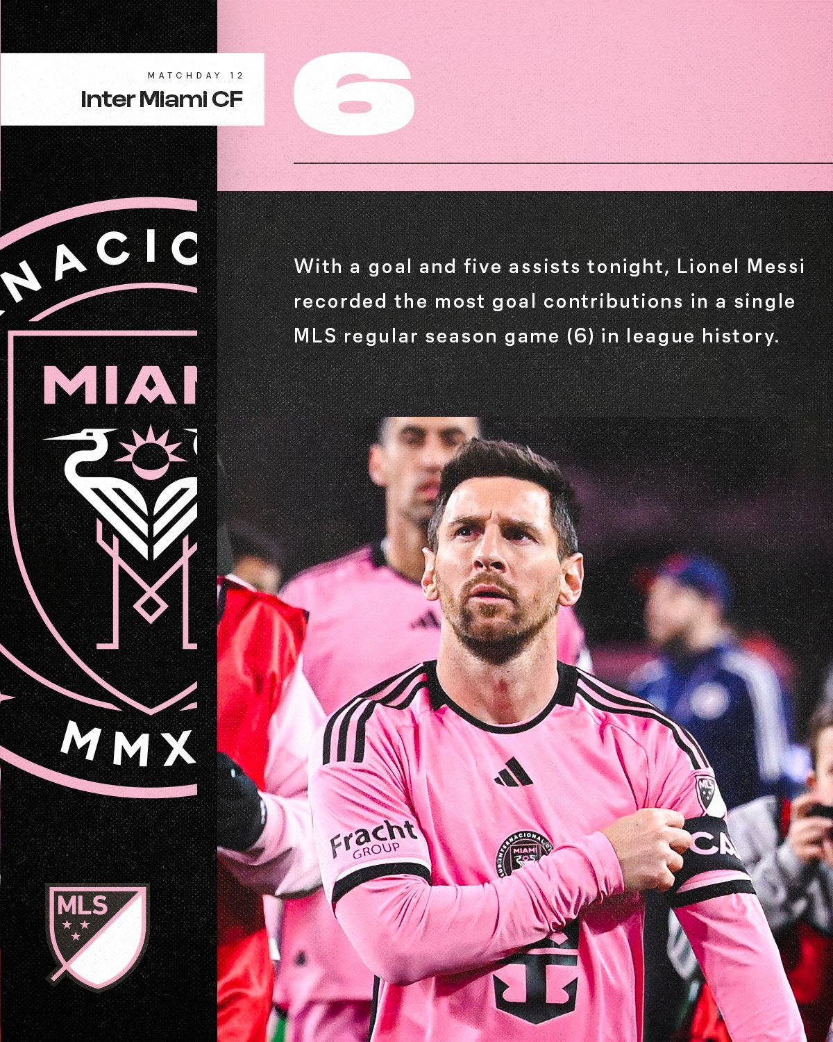 在周六迈阿密国际足球俱乐部在大通体育场以6比2击败纽约红牛队的比赛中,"历史最佳"再次发威,制造了惊人的6个进球(1粒进球,5次助攻),带领球队再次取得了统治性的表现。