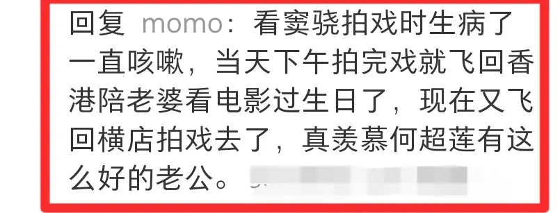 窦骁原本正在横店拍戏,刚进组两个月因为拍摄过程劳累,心理和身体都备受压力,状态一直不好,拍戏时也常常咳嗽,恰好这几天赶上了妻子何超莲的33岁生日,窦骁不顾身体的不适,还有工作行程的繁忙,前一天拍完自己的戏份后连忙乘飞机飞到香港与何超莲相聚。
