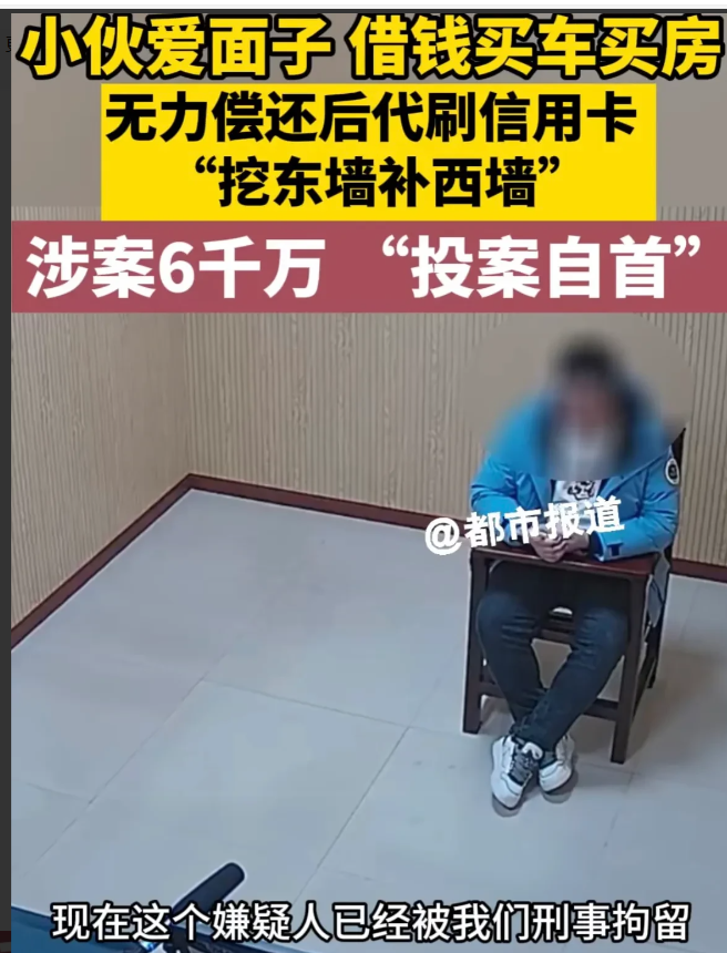 “信用卡毁了多少人!”河南郑州,一小伙打肿脸充胖子,借钱买车买房。无力偿还后,以代刷信用卡为由,让他人投资。拆东墙补西墙,最后欠下6千万,走投无路后投案自首!