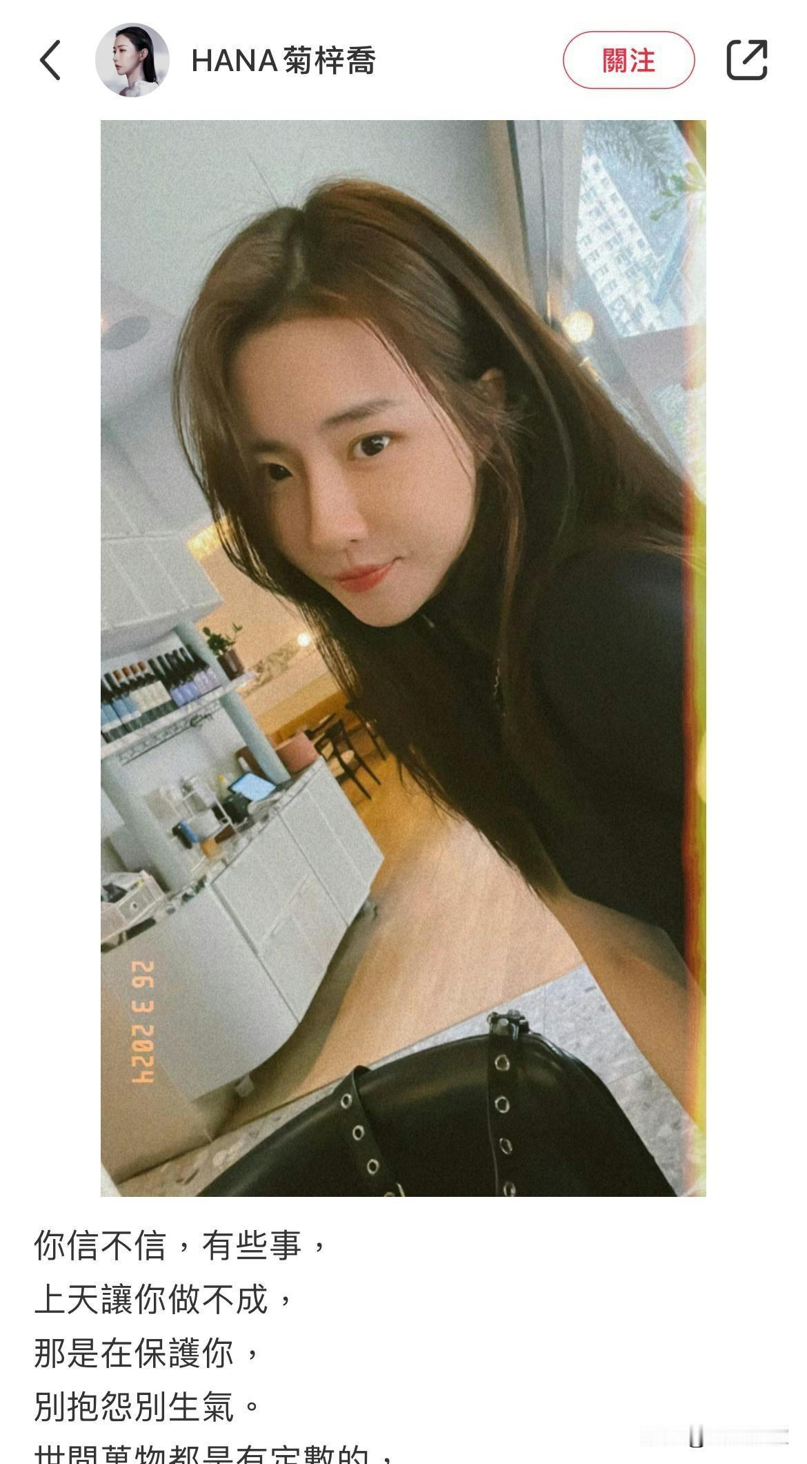 美女歌手离开TVB美貌进化激似周海媚,大骚白滑心口被指益吴卓羲! 前星梦一姐菊梓乔(Hana)曾被指投闲置散长坐冷板櫈,早前约满离巢后,即投靠旧老板何哲图。菊梓乔一度发文意有所指发文:「失去未必是祸。」疑重提被冷待一事。 菊梓乔日前又拍片,勉励自己要活在当下,菊梓乔在片中表示:「唔好谂琴日,唔好谂听日,净系谂今日。」又发文指:「你,懂了吗?」似乎已走出被旧东家冷待的不快。 然而有网民就「错重点」留意到菊梓乔外表,菊梓乔穿上低胸连身裙,大骚白滑心口,称益了菊梓乔绯闻男友吴卓羲:「便宜吴卓羲那小子了」。有人亦大赞菊梓乔「有D(啲)似周海媚」,菊梓乔开心道:「有人说过」。
