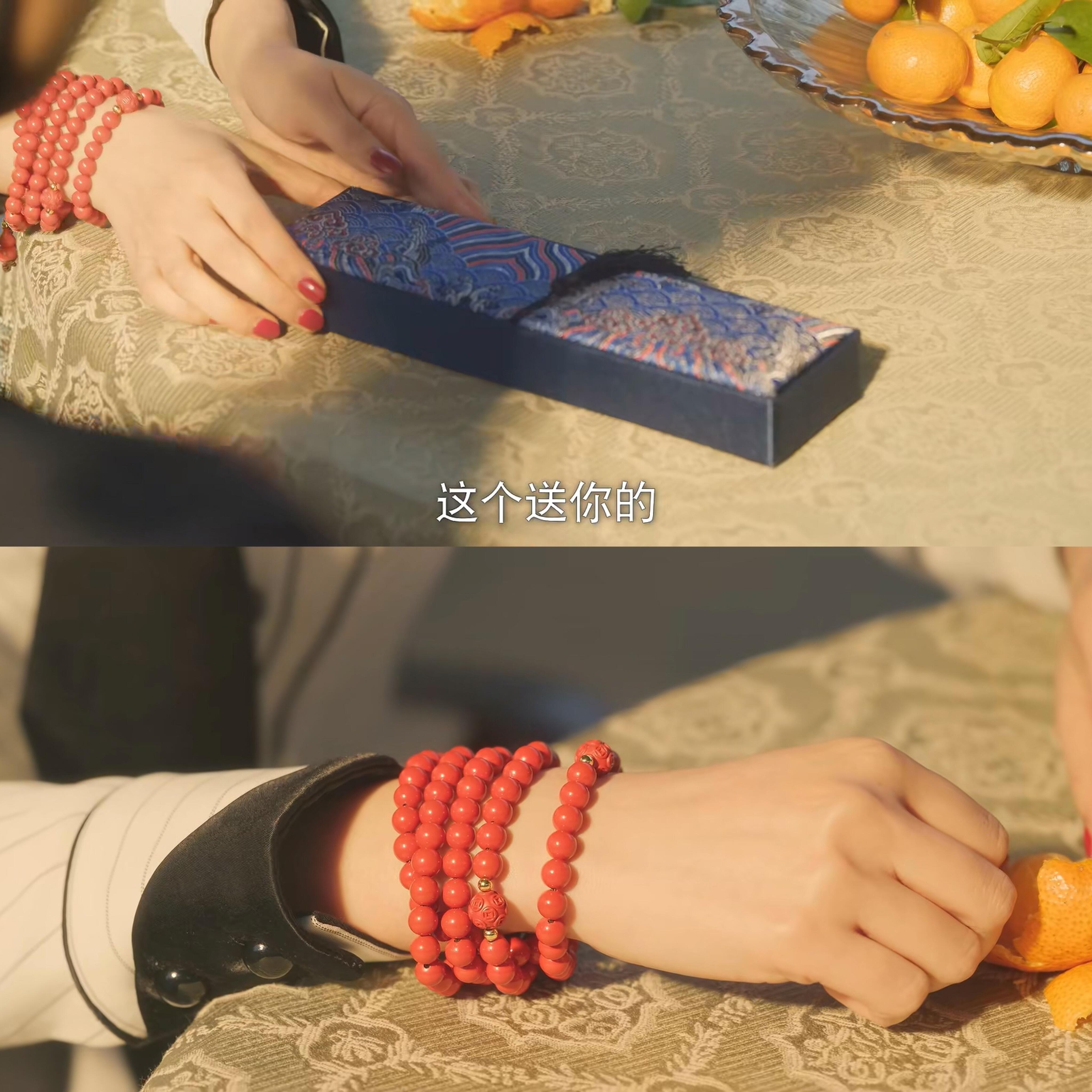 她送他最爱的荼靡花的种子,他闻到花香就知道是她;她送他专门买的对戒,他一直戴在手上;他送她自己得到的赏赐,她也一直戴在脖子上;就连她最新买的手串,也是一买买一对……