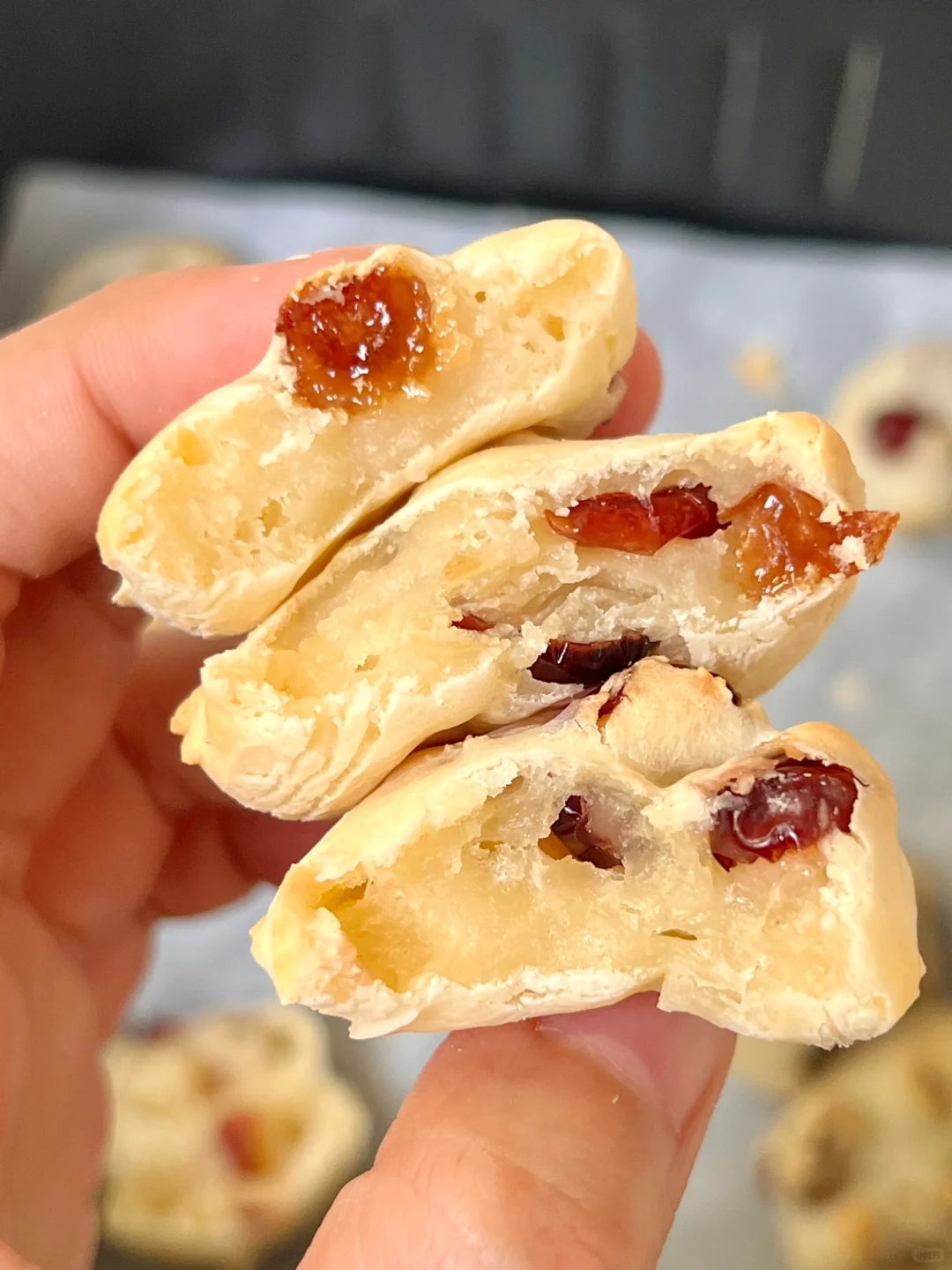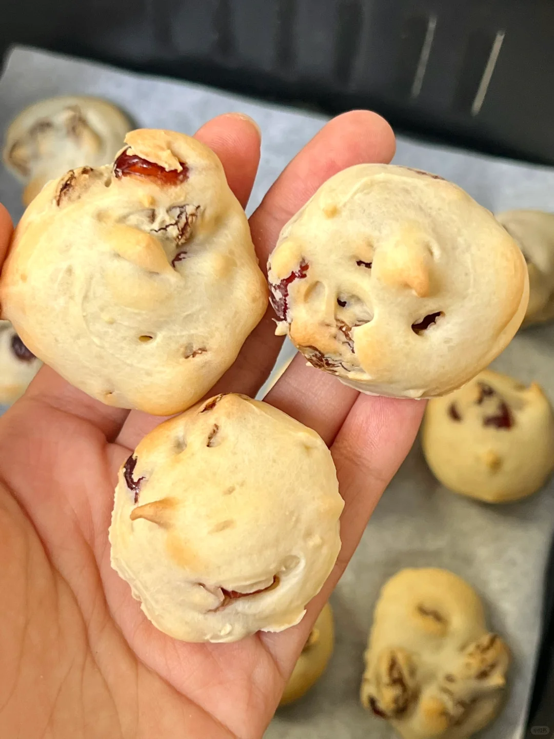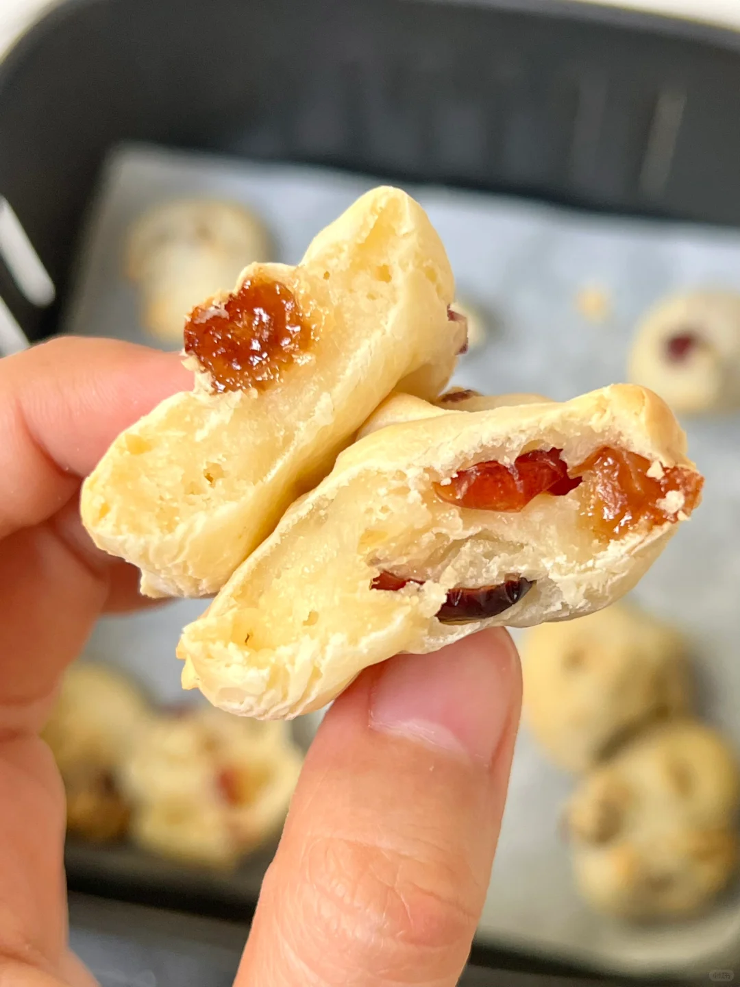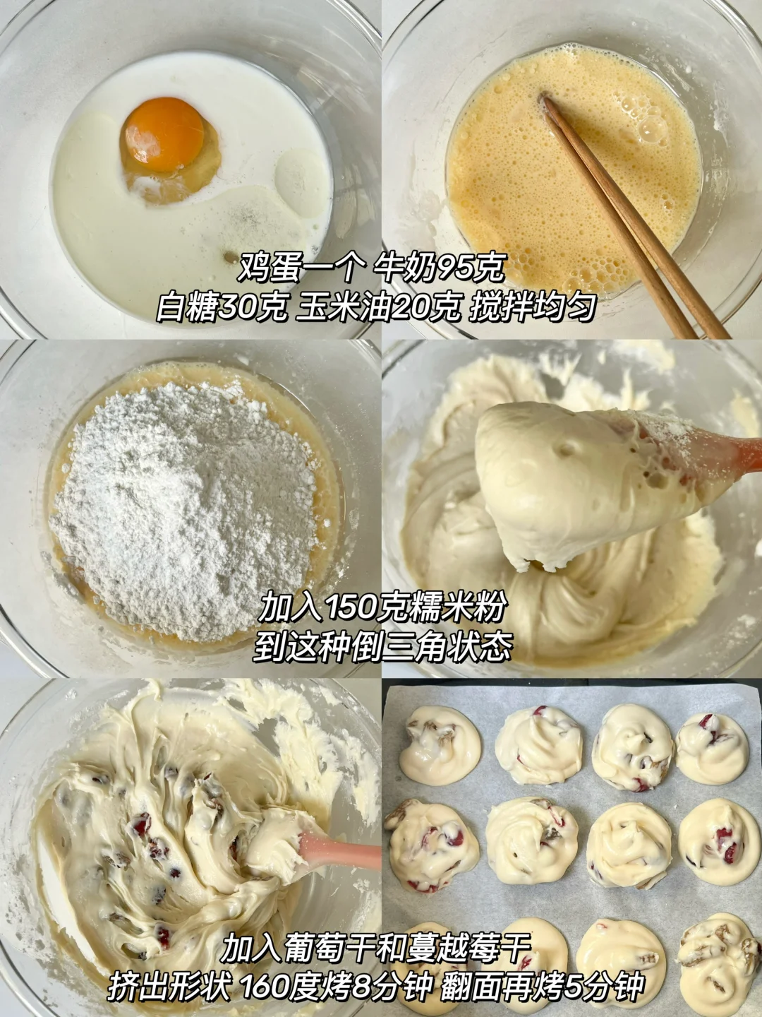 蔓越莓提子麻薯! 我一口一个🤣一锅根本不够吃 酸酸甜甜的!入口外脆里糯~ 淡淡的奶香味 好有嚼劲! 步骤如图~ 空气炸锅160度烤13分钟就行啦