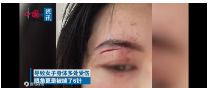 女孩完全被撞懵了,回身想去看情况,眼部的疼痛却让她不得不捂住眼睛,满手是血。事后,女孩多处受伤,眼角缝了六针。她说,要是再撞偏点,可能会致盲。