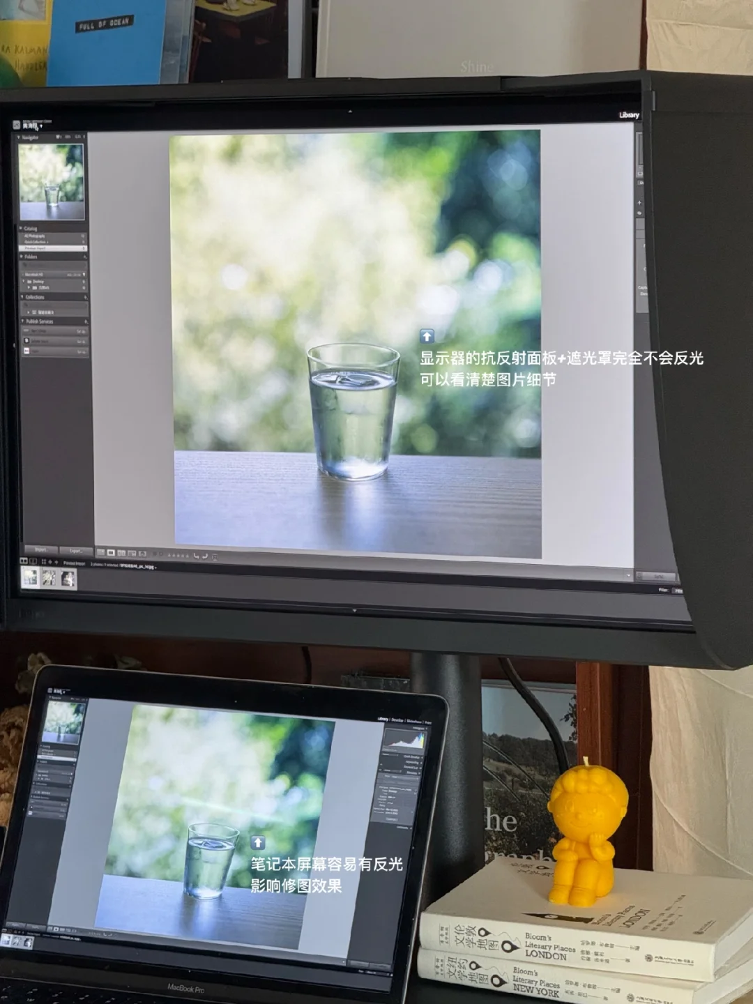 2️⃣ 24寸的屏幕大小,可以便捷切换横竖屏,加上抗反射面板+遮光罩的配置,可以有效控制周围环境光线对色彩判断的干扰,在修图时有特别沉浸的体验。此时再打开书桌旁的黑胶唱片机,慵懒地播放音乐,下班后的这段时光,总想要一直延长下去。