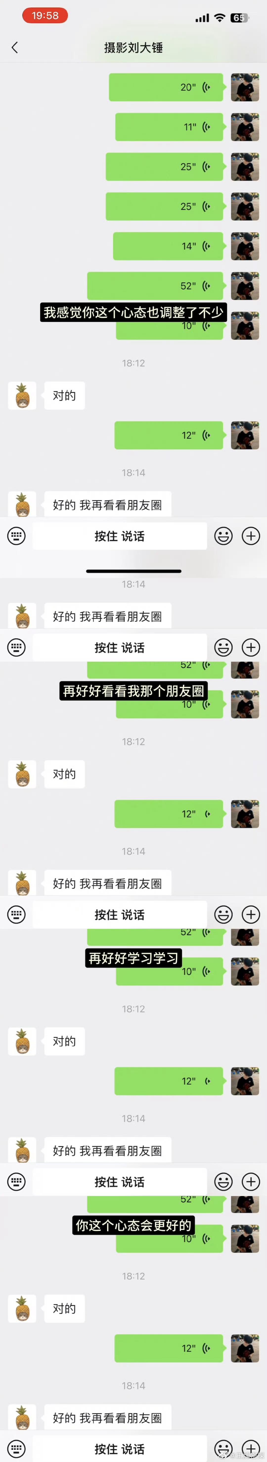 下一秒刘大锤.....人听麻了留下一句我再看看朋友圈哈哈哈哈哈哈哈哈哈哈[允悲]他这辈子都想不明白这一堆语音条到底是要干嘛的吧[允悲][允悲]