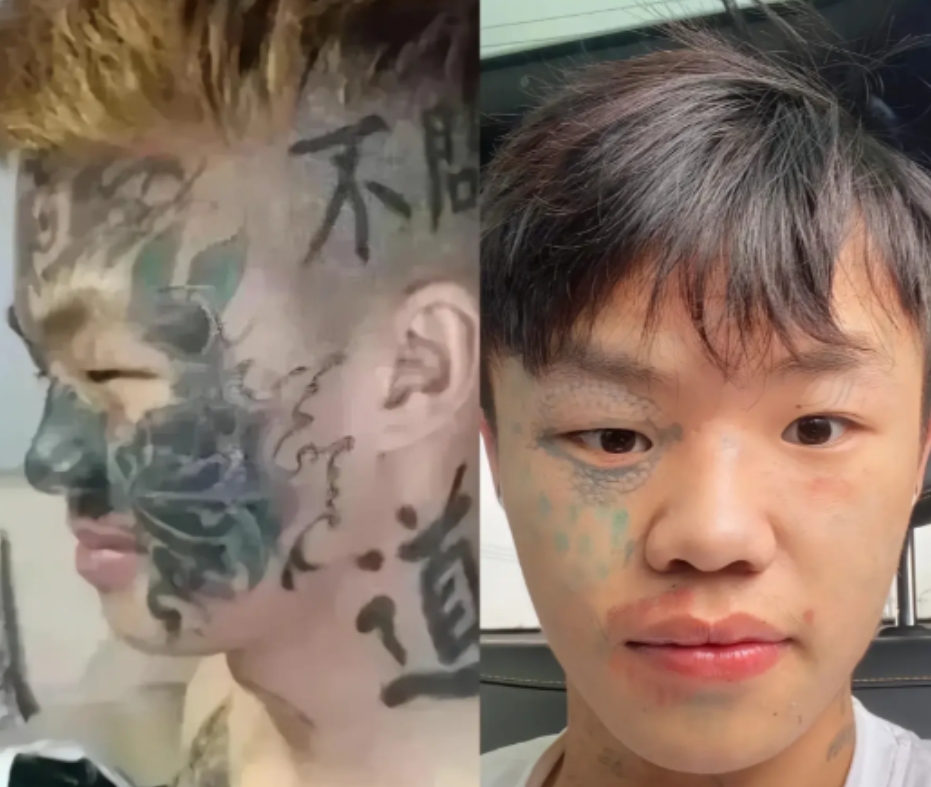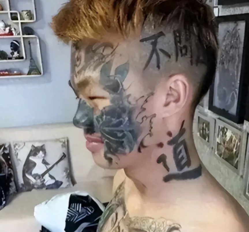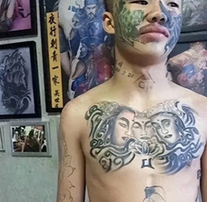 科普一下,他出名之后,有很多纹身店老板免费帮他洗,但他洗完就又去纹,已经反复几次了