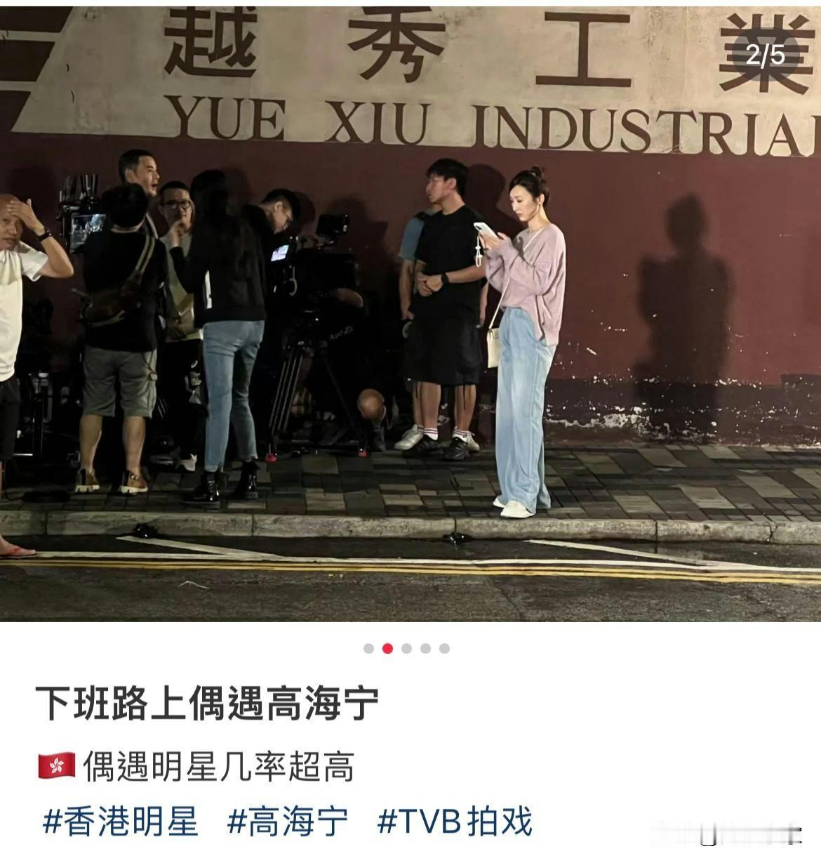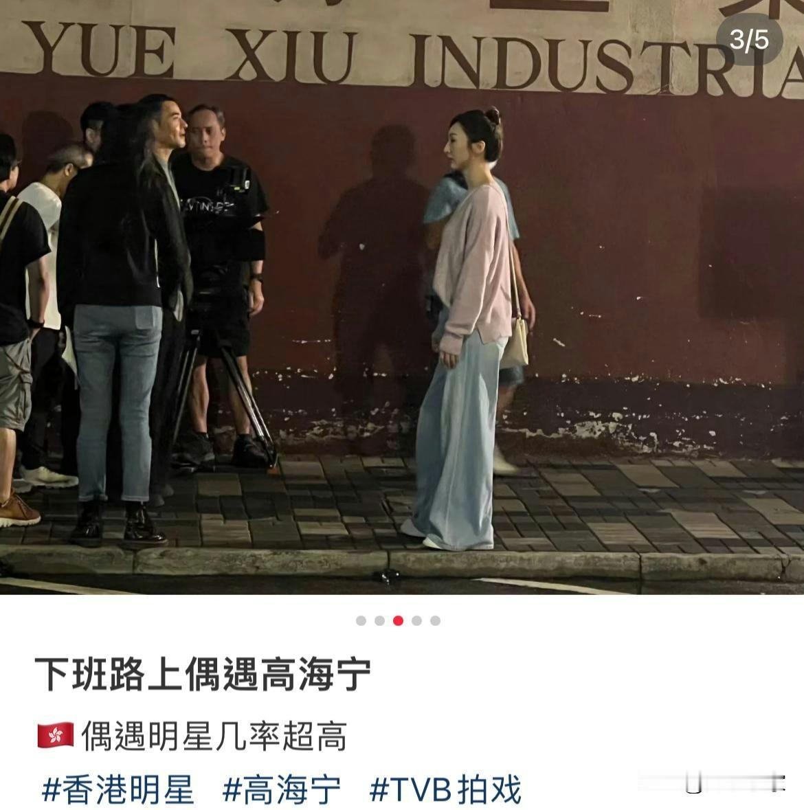 TVB最好身材女星被野生捕获 漆黑环境景拍剧靓到发光 TVB最好身材女星高海宁(高Ling)上年凭剧集《新闻女王》夺得《万千星辉颁奖礼2023》「最佳女配角」奖项後,获得超高的曝光率,因此深受品牌欢迎,以及内地节目的邀请。高Ling一向工作忙不停手,导致身体发生警号头部出现硬块,不过後来她经过休养过後继续复工拍摄新剧《武林》。最近有网民在香港某工业大厦附近巧遇高海宁与黄智贤在漆黑环境景拍剧,因此曝光她的最新容貌和状态。 该名网民写上:「下班路上偶遇高海宁,偶遇明星几率超高
