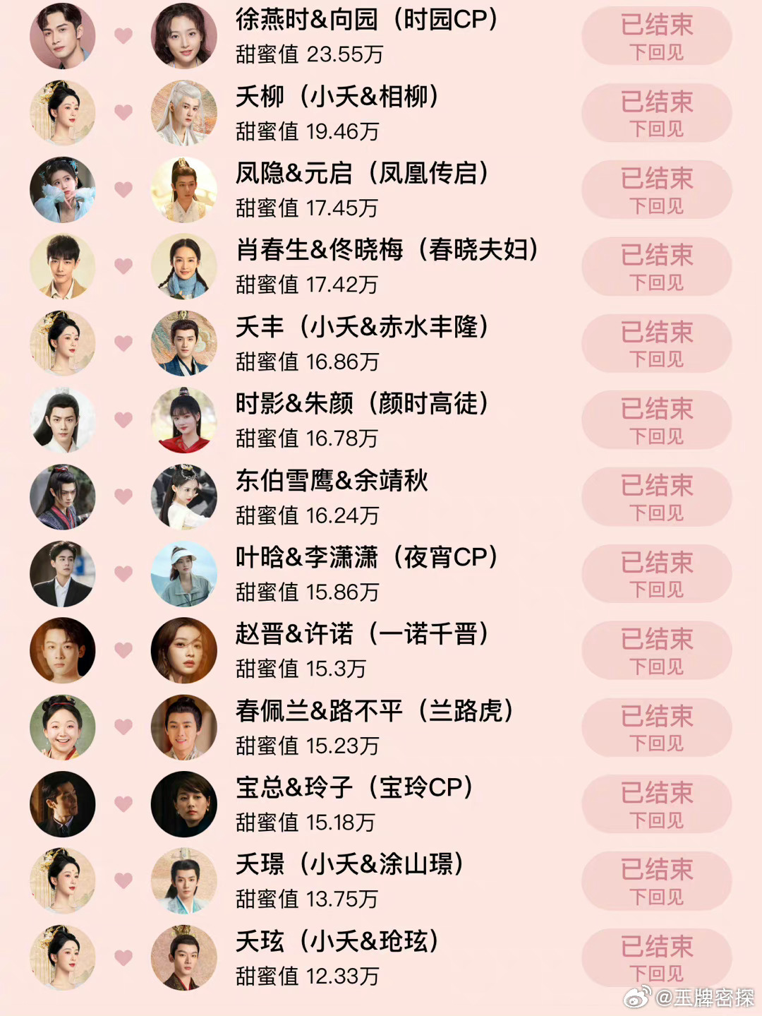 🐧520角色CP大赏最终排名🈶大家最嗑哪一对?