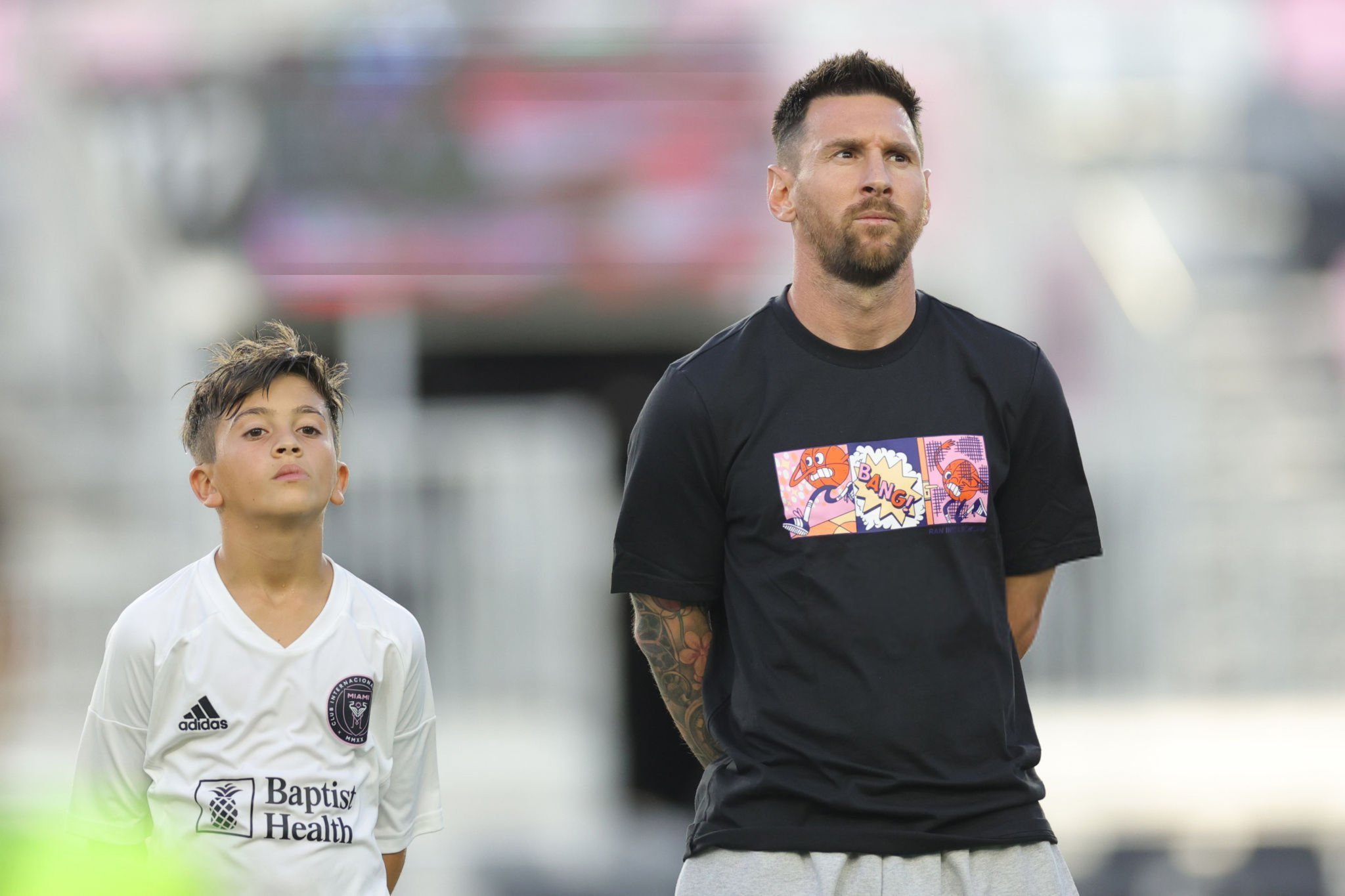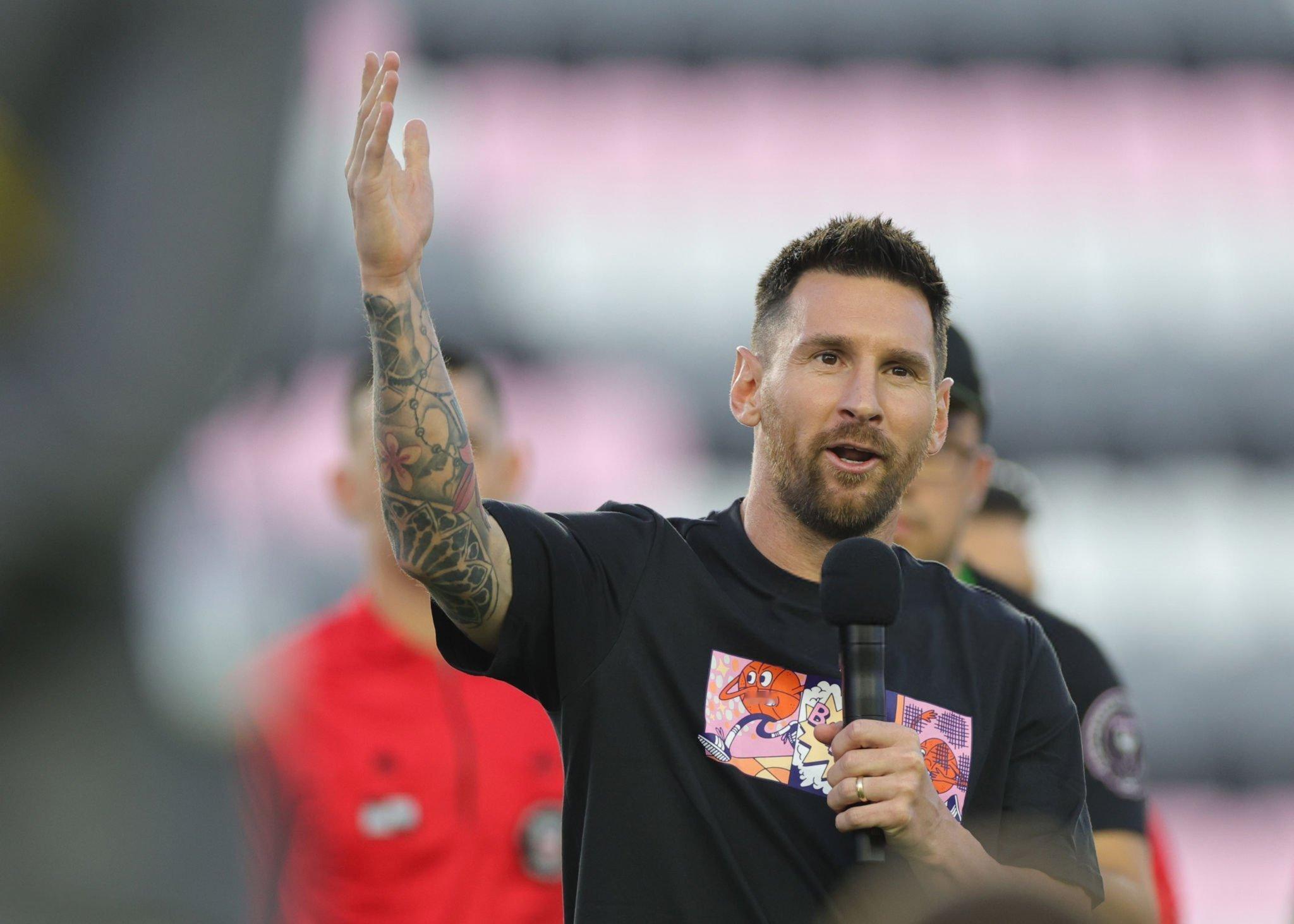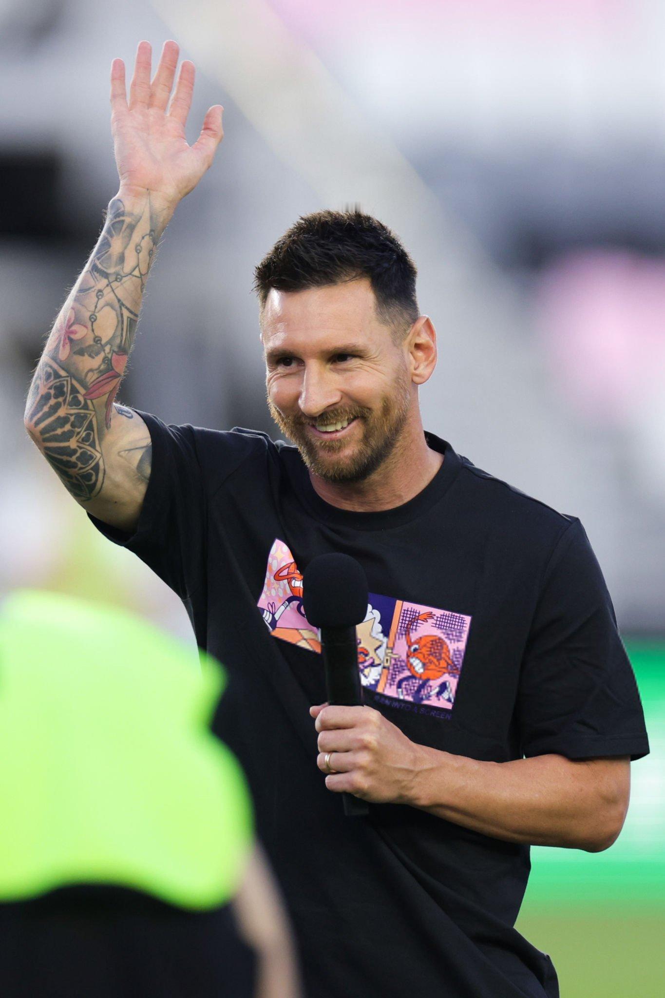 今日份随迈阿密国际参加公开训练课的梅西[可怜]金球奖也一起亮相球场,球迷们争相合