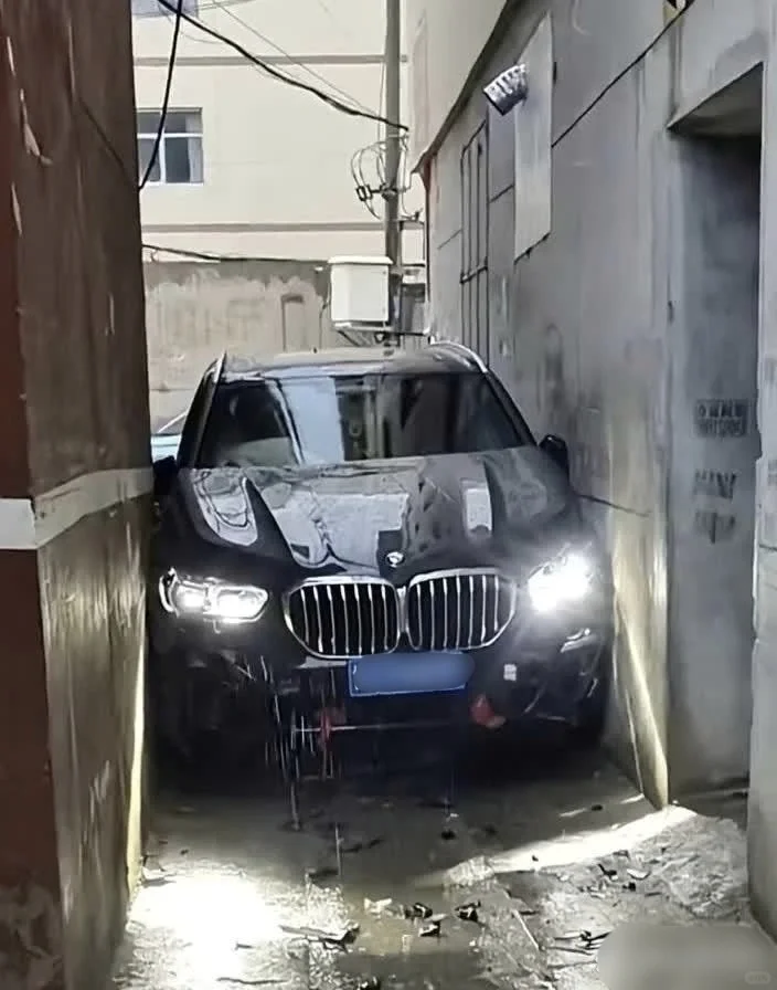 看着都疼,宝马X5被开进巷子,这下维修费不得破产啊...
