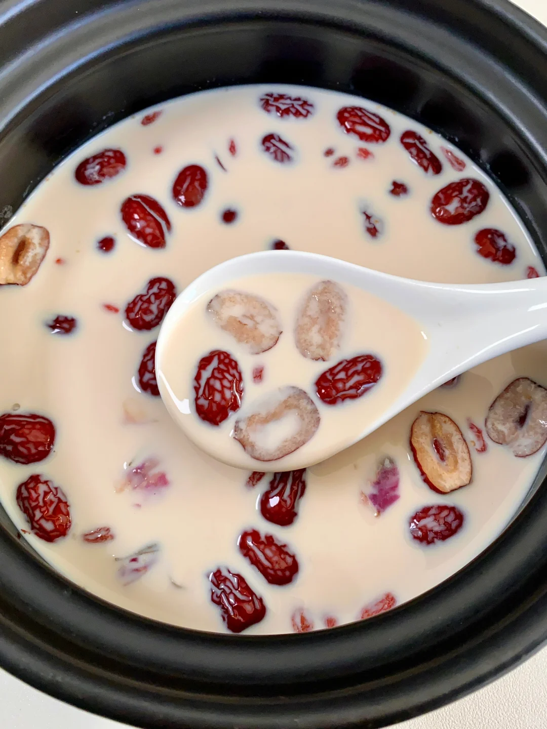 红枣牛奶茶!女生喝真的很好!!暖乎乎的 香甜的枣香,奶香贼浓郁!营养又健康!! 做法也简单!经常喝🧏🏻♀️红润润哒~ 📝红枣、枸杞、黑糖、玫瑰、牛奶 ✔️红枣去核对半切开,加入枸杞和玫瑰兑入100ml水煮开5分钟,再加入黑糖和牛奶搅拌煮开即可 都是些健康友好食材!搭配一起煮奶香醇厚啦!还有淡淡的玫瑰香,生理期来上一碗暖乎乎的贼舒服!整个人都元气满满~