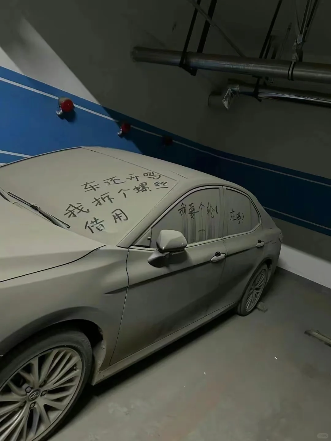 据我观察这应该是丰田雷凌吧?就是不知道是哪一款,停这有些年头了。 网友发现地下车库有一辆车一直放在哪里,整个车上被人涂鸦了各种文字,好奇问大家这是谁的车,怎么一直不开?