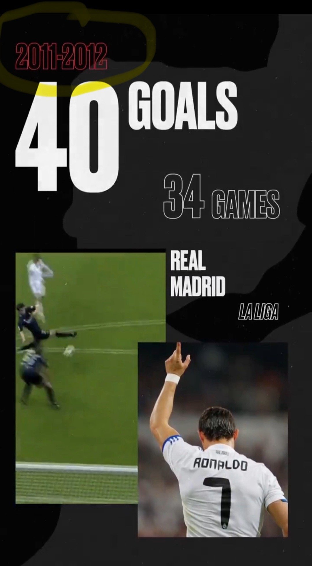 C罗社交媒体上发布视频,庆祝自己在四大联赛都成为最佳射手!视频中呈现C罗为2011-12赛季西甲最佳射手,34场比赛攻入40球(其实数据是10-11年)。