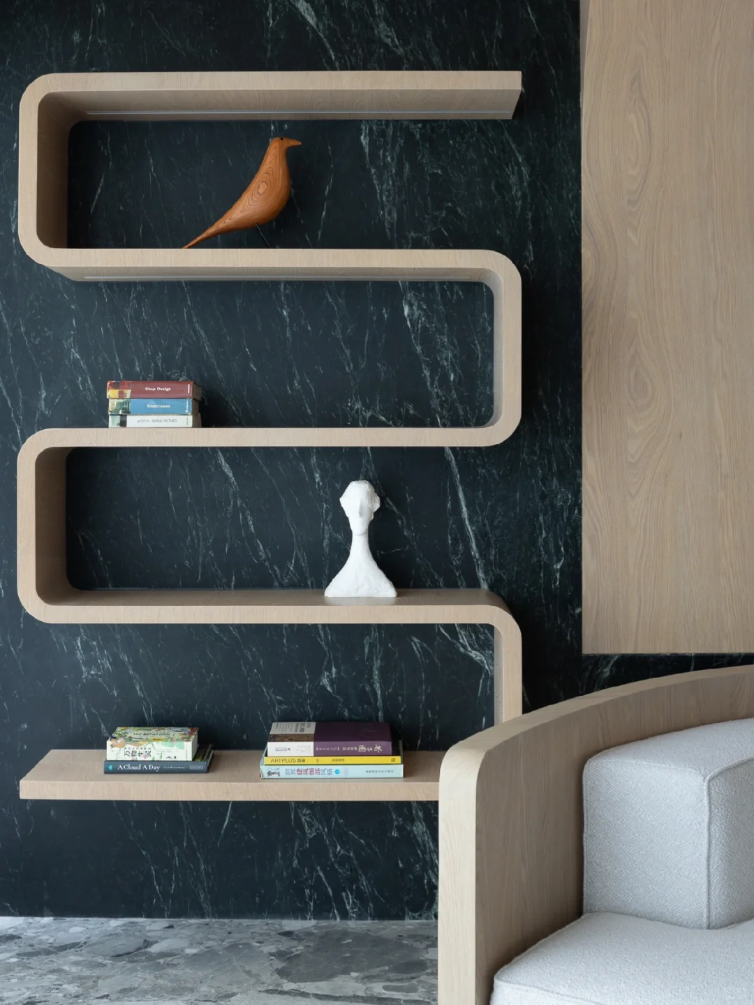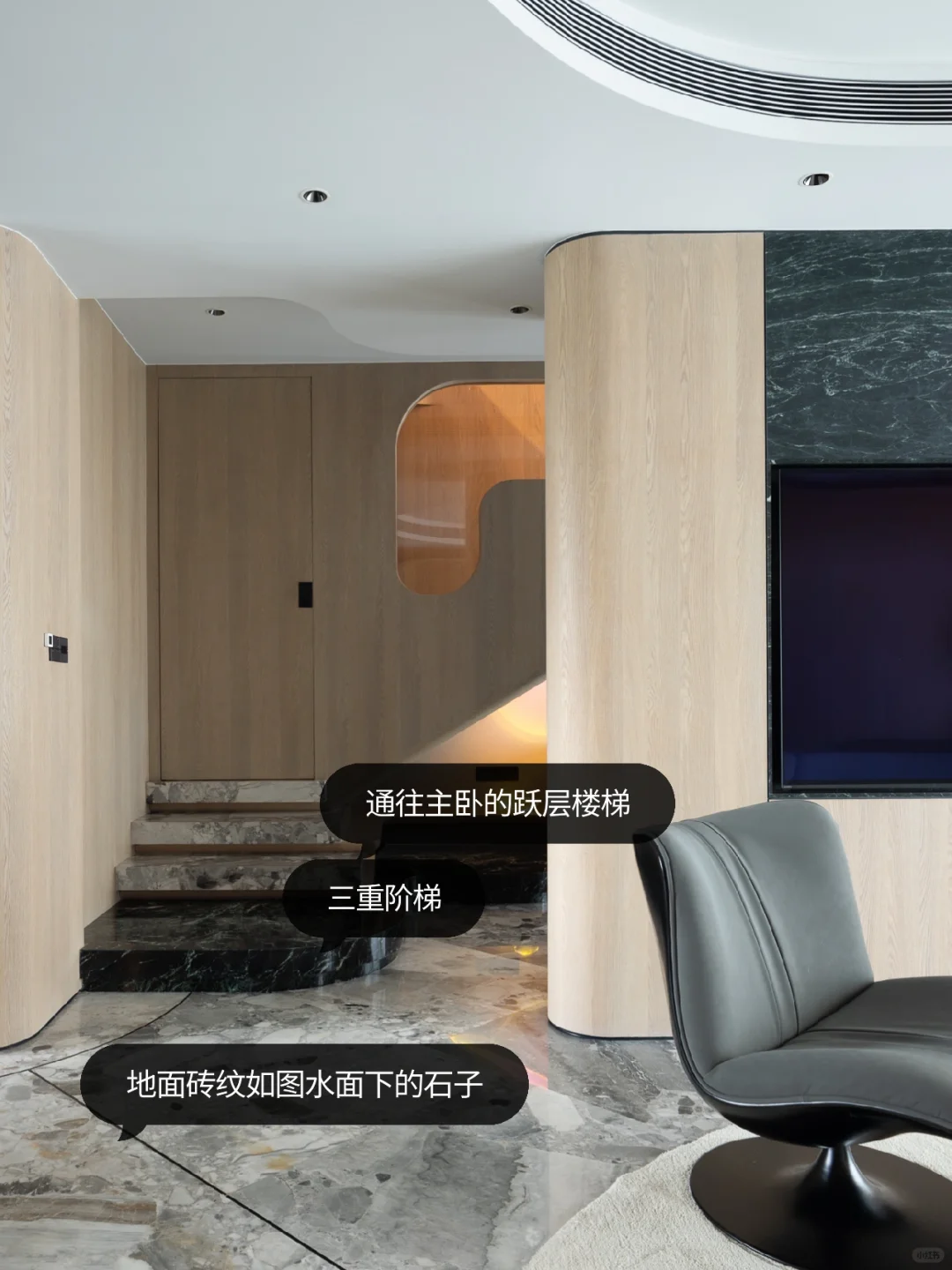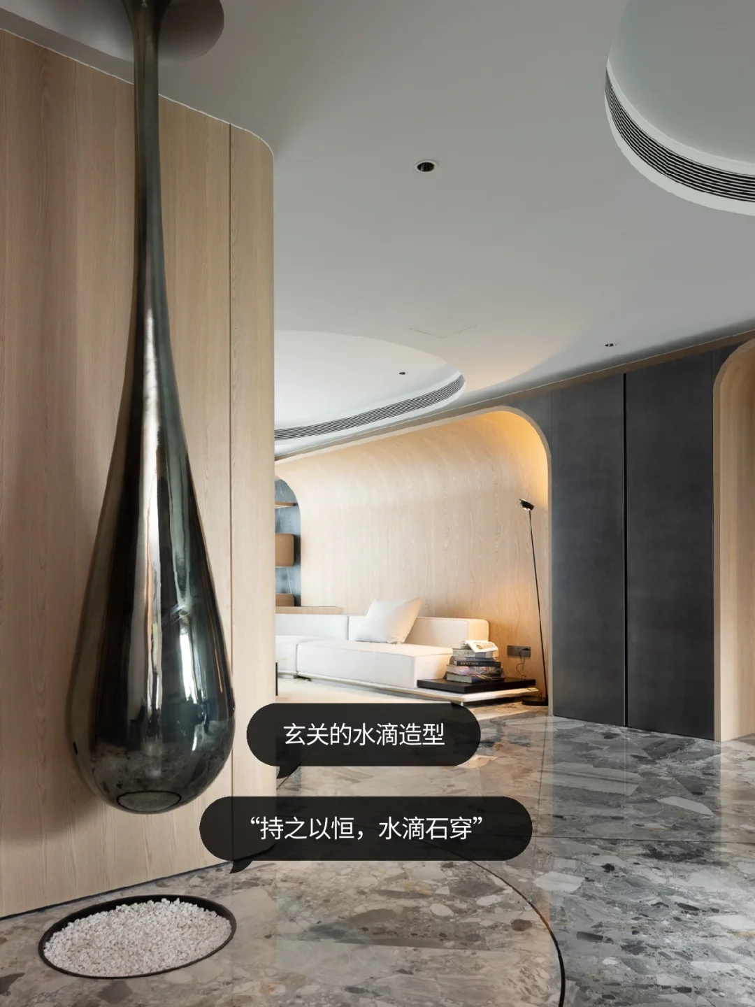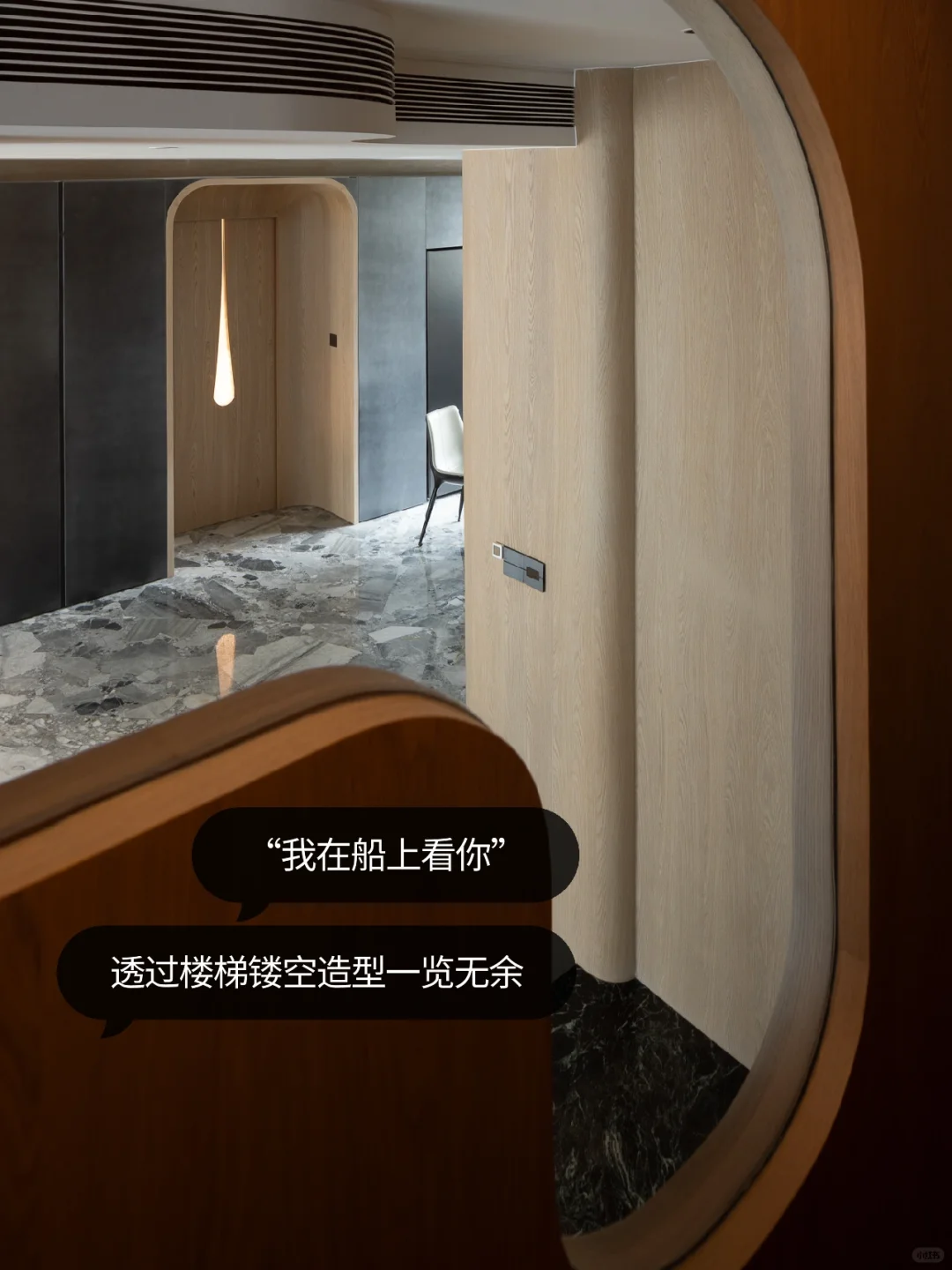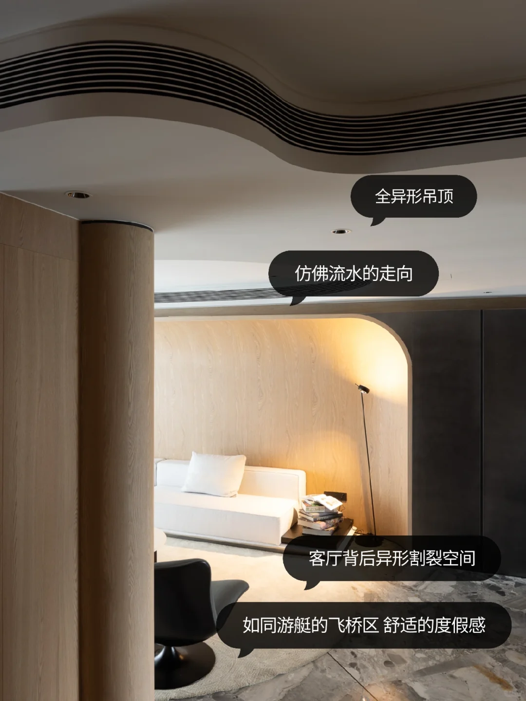NEWCASE.都会道壹号 没错!近期大热的全全异形设计正是我们的游艇风style[派对R] 把水的曼妙融入原木的造型之中,千姿百态的异形流入室内的设计之中。水滴造型打造的玄关开启了整屋的水域流线,地面的石砖造型如同水滴落下将要透过的清石,门洞的水滴暗影又似乎是这一滴水的投影……客厅如同坐落于游艇之上,仿佛要在此度过惬意的度假时光。异形设计的硬朗造型被水源流动的概念中和,成为另一种偏执的柔和、惬意。度假的游艇已经启航,生活的明朗就在前方[自拍R]