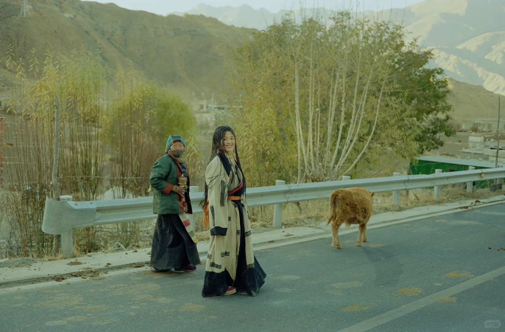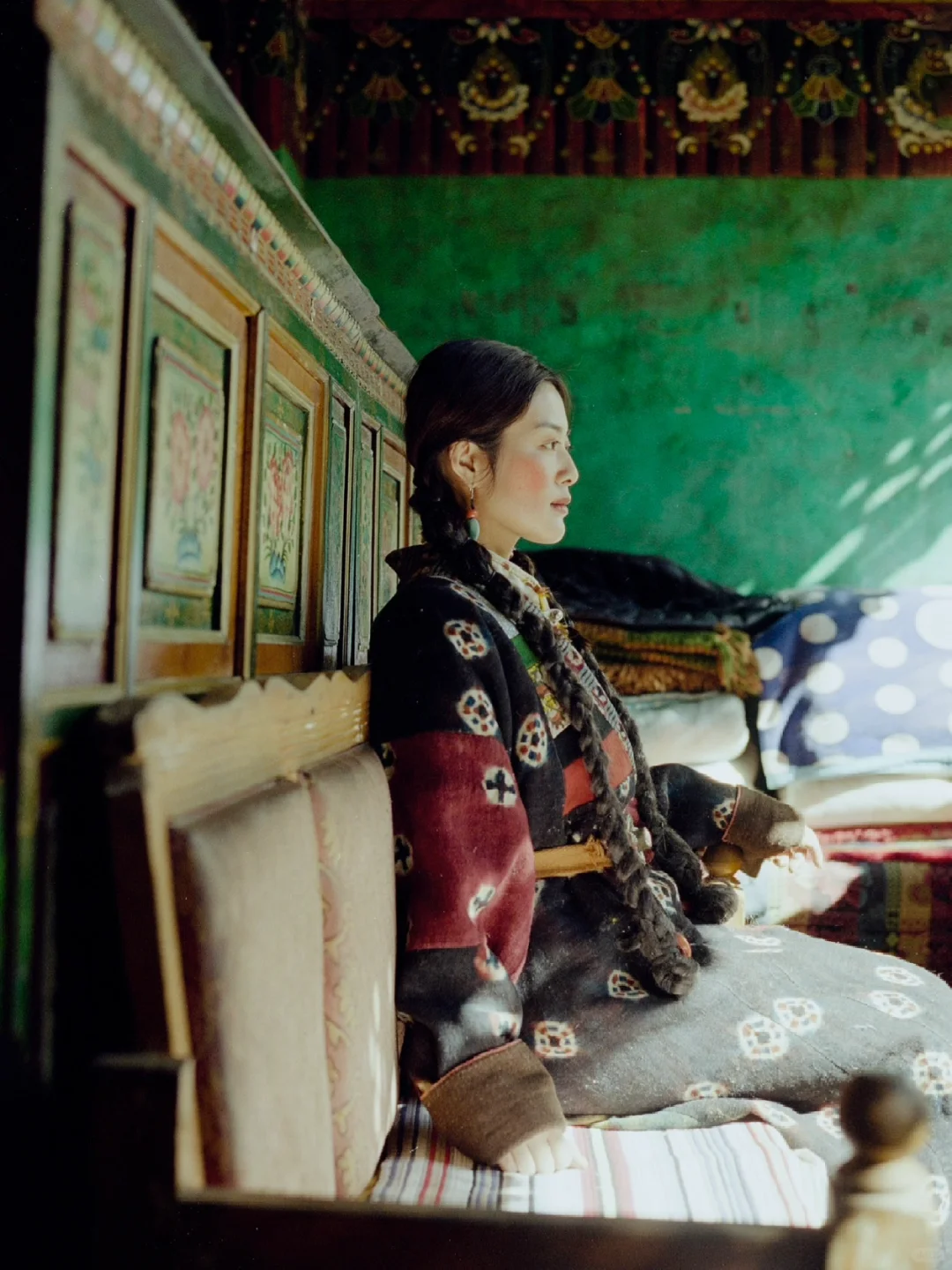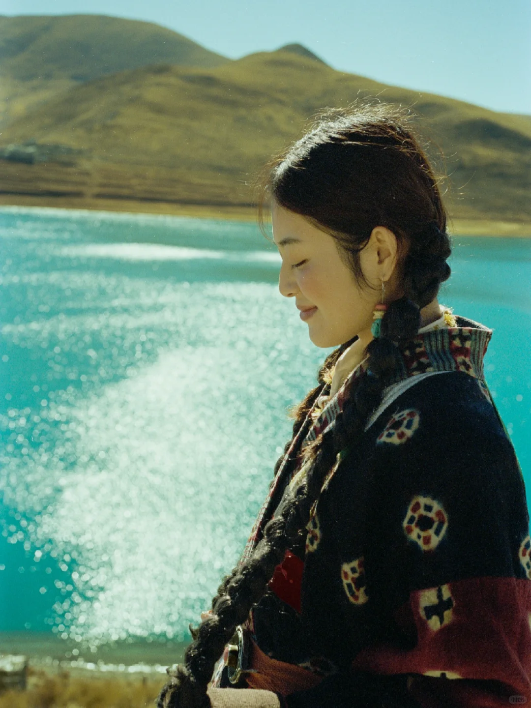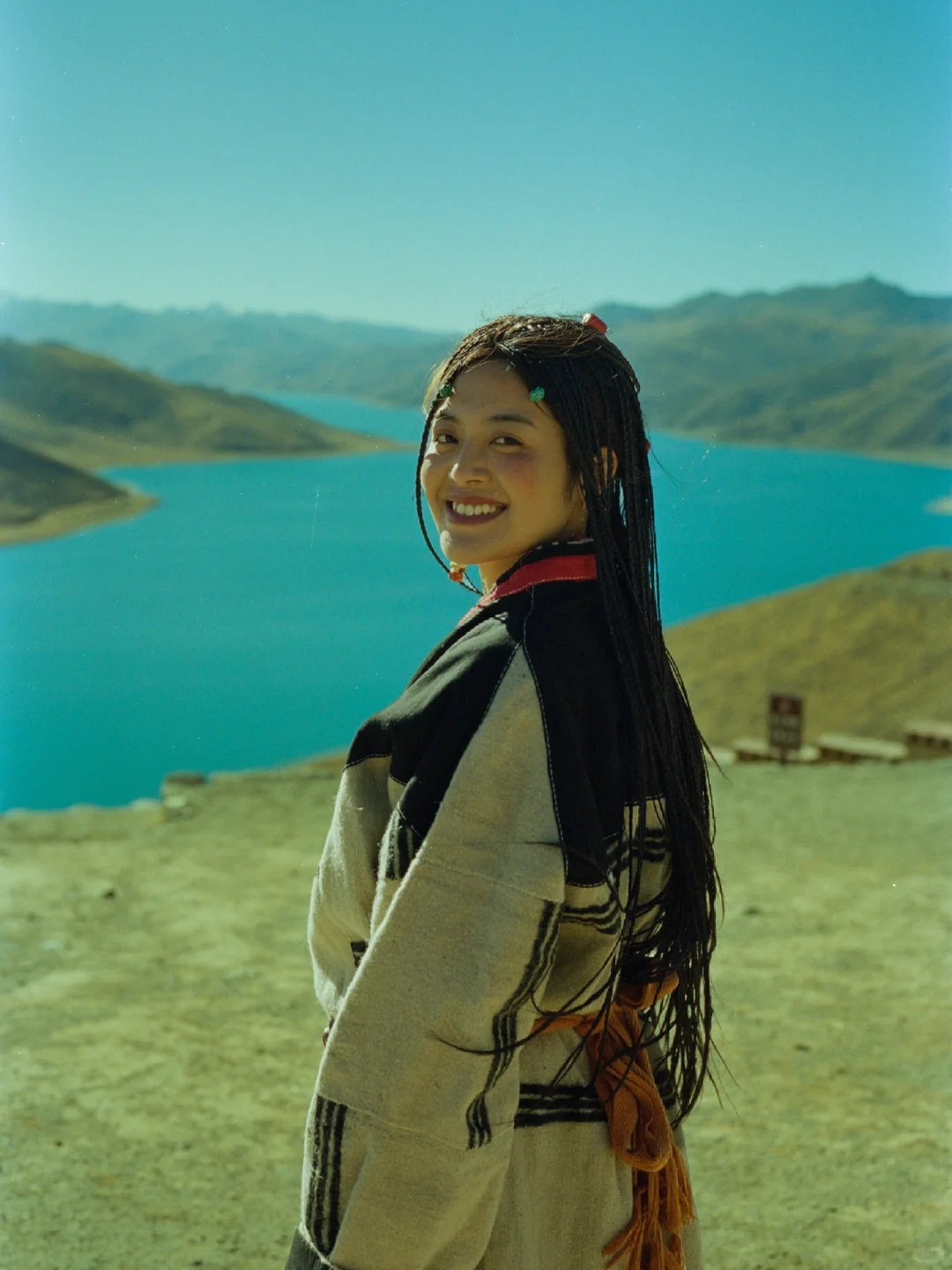 翻出去年十一月底在羊湖照片,形山造的胶片摄影,小隐给我做的妆发造型,为何这么不一样呢?因为他们是真的生活在地,在山上的家里为我化妆,简单勾勒,没有美瞳,衣服也是真正的传统藏袍,很重很重,可以抵挡山上的风,和八廓街的流水线服饰不一样。