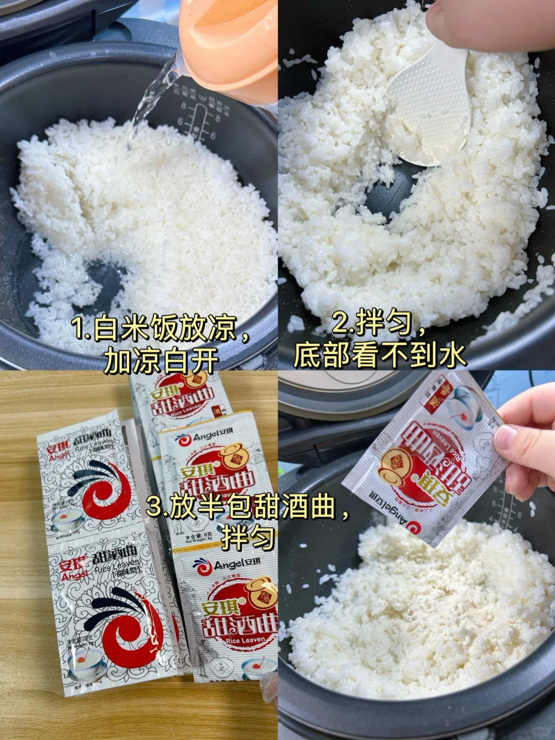 把剩米饭做成甜米酒,只需加甜酒曲拌一拌