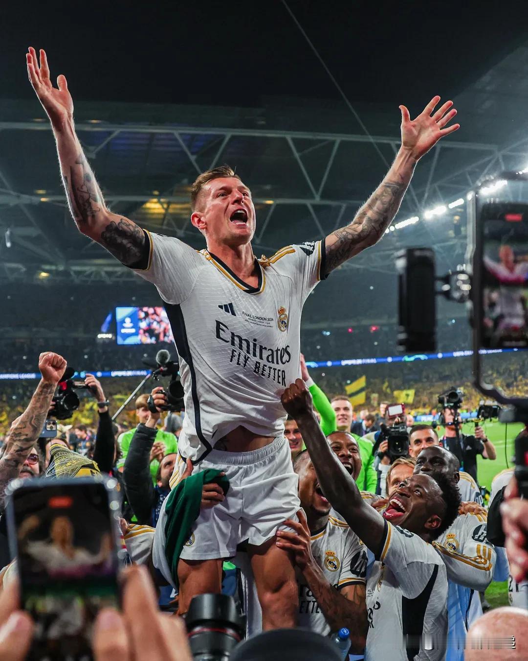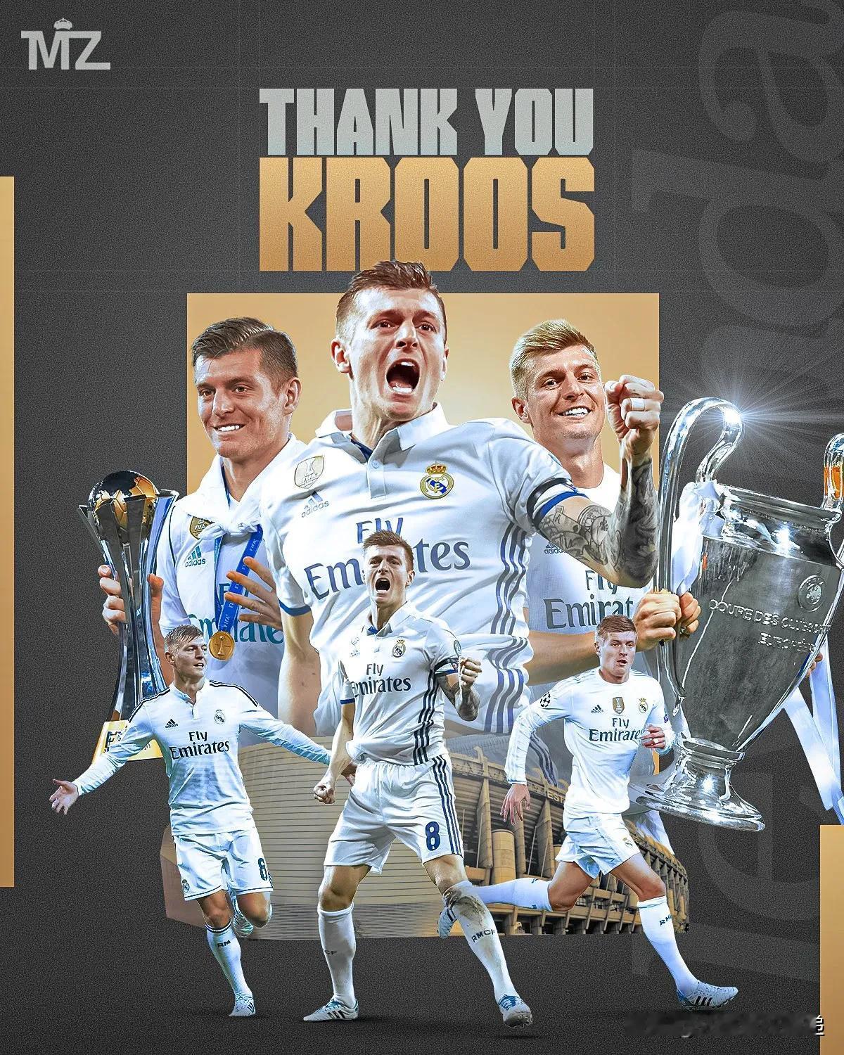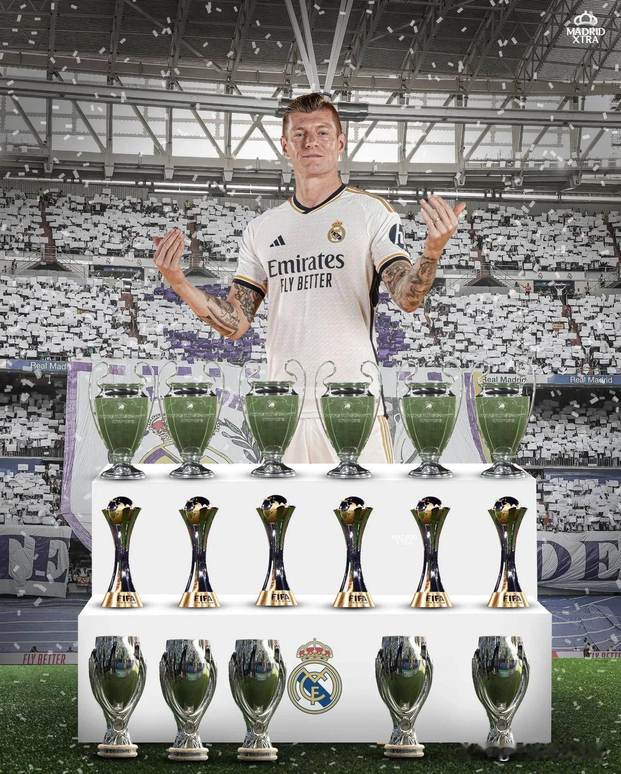 🤍 托尼克罗斯在效力皇家马德里的最后一场比赛中赢得了欧冠冠军: 🏆🏆🏆🏆🏆🏆 欧冠 🏆🏆🏆🏆🏆🏆 世俱杯 🏆🏆🏆🏆🏆 欧洲超级杯 🏆🏆🏆🏆 西甲 🏆🏆🏆🏆 德甲 🏆🏆🏆🏆 德国杯 🏆🏆🏆 西班牙超级杯 🏆 世界杯 🏆 国王杯 🏆 德国超级杯 托尼克罗斯的皇马生涯数据: ◉ 465 场比赛 ◉ 34,091 次传球 ◉创造了 974 次机会 ◉传球准确率94% ◉ 93 次助攻 ◉ 28 个进球 ◉ 23 个奖杯