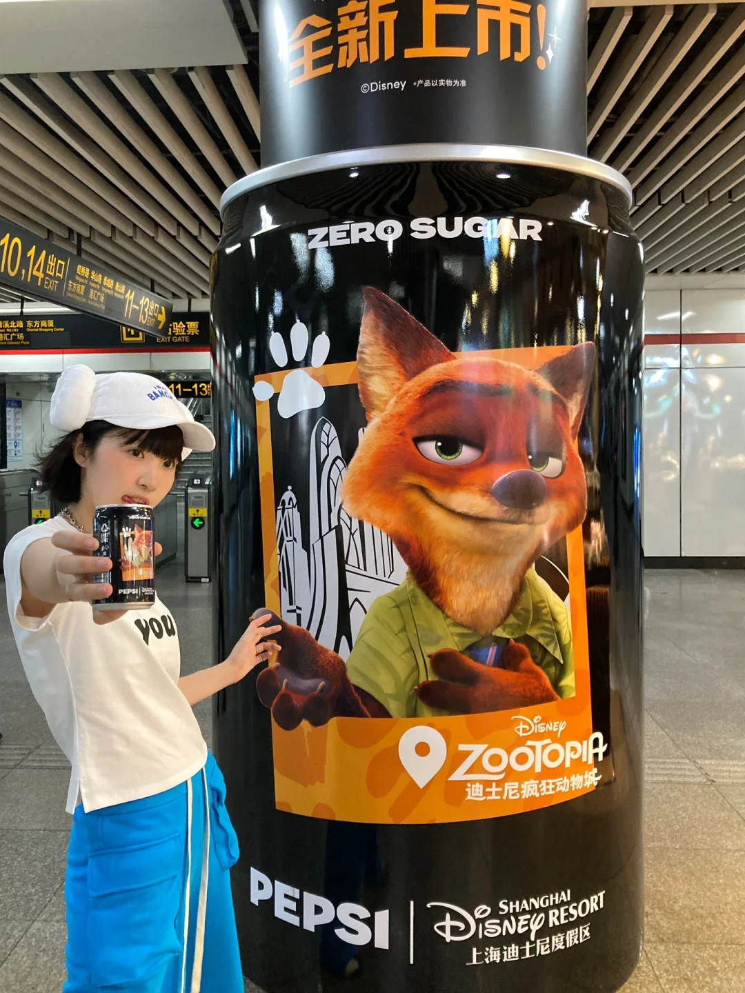 原来是百事可乐和上海迪士尼疯狂动物城的联名迷你罐的放大版!