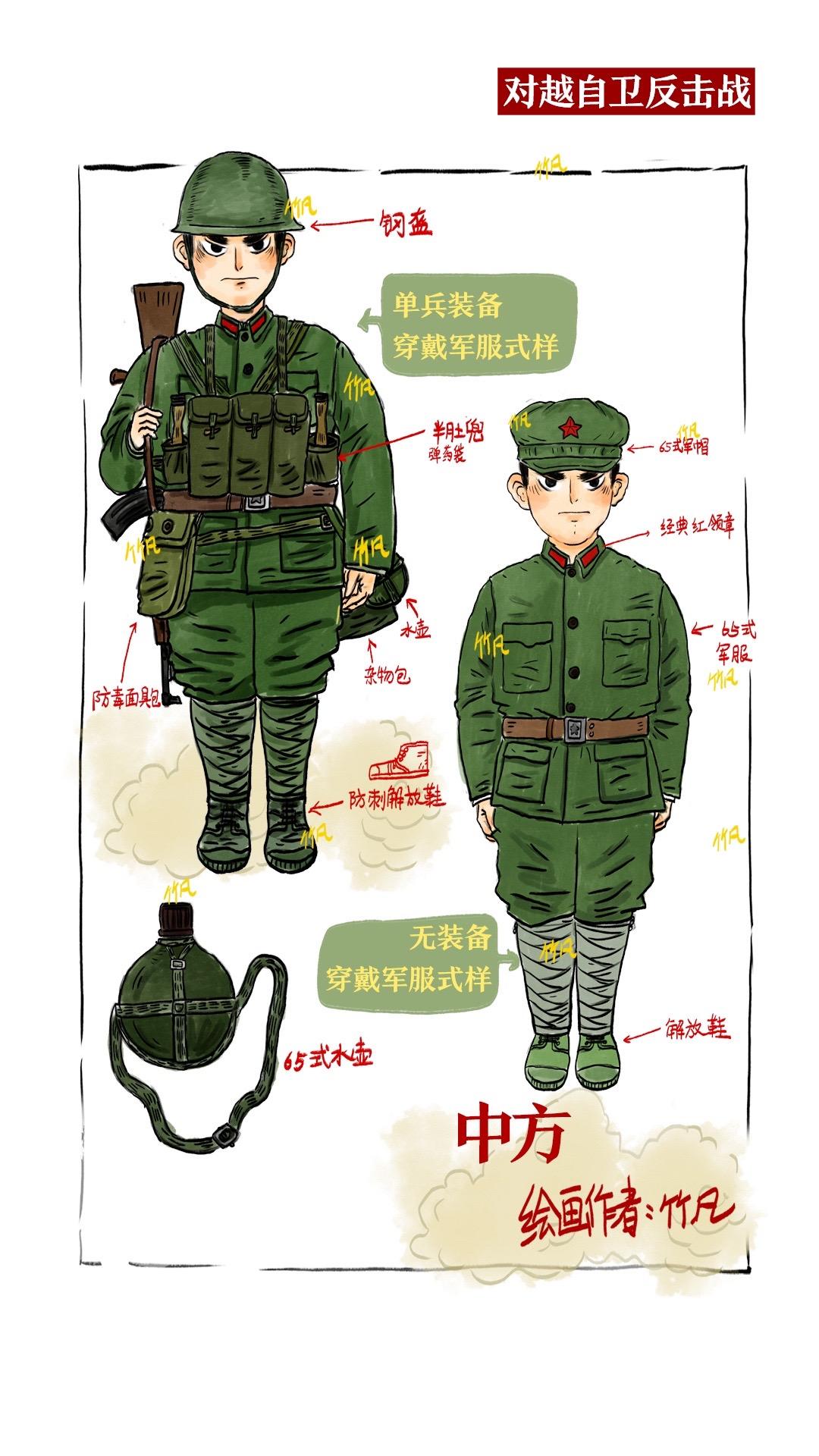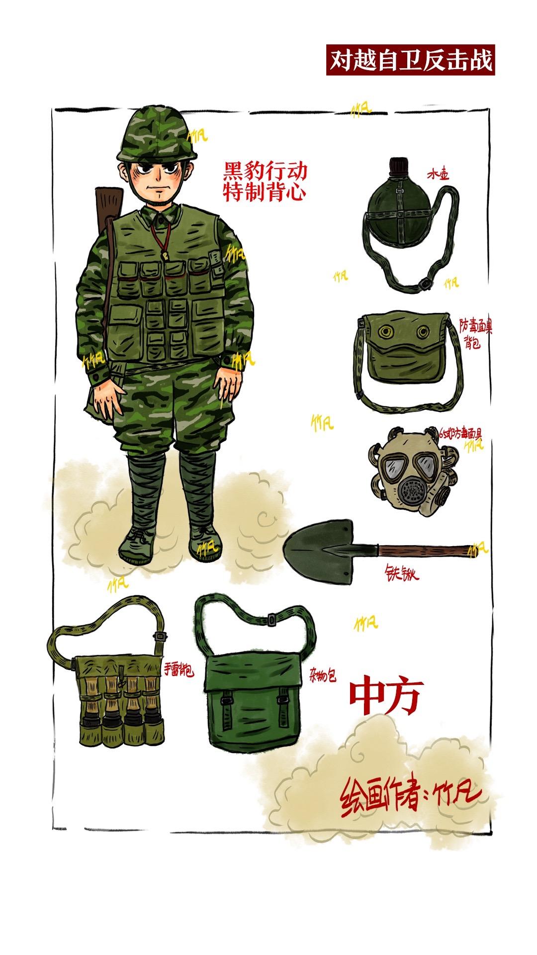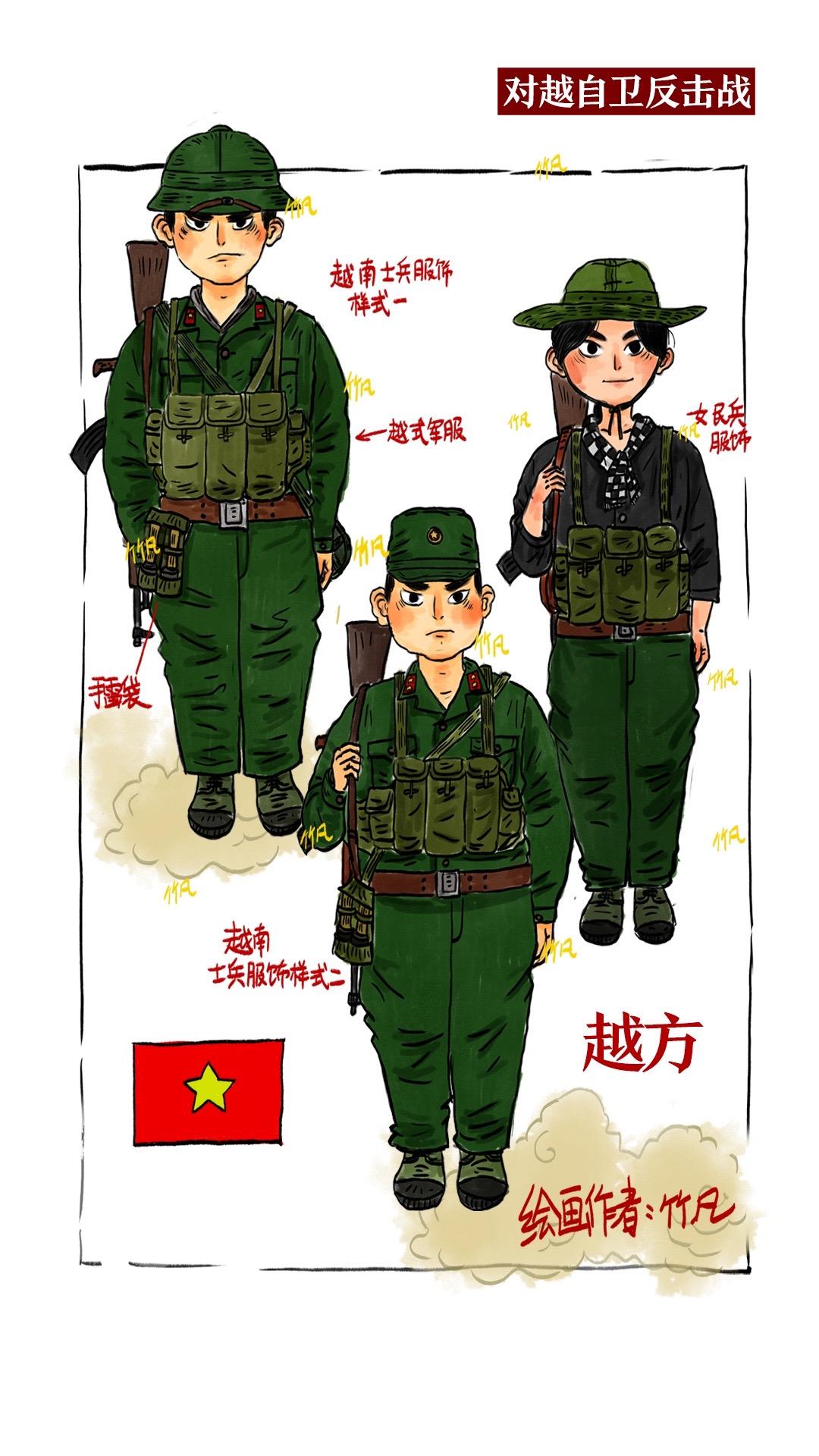 对越自卫反击战图稿。内容主要涵盖对越自卫还击战(1979.2-1979.3)以及后期十年轮战,绘制内容为中越双方单兵服饰及装备,武器方面只绘制中方轻武器,越方只绘制服饰及单兵样式。