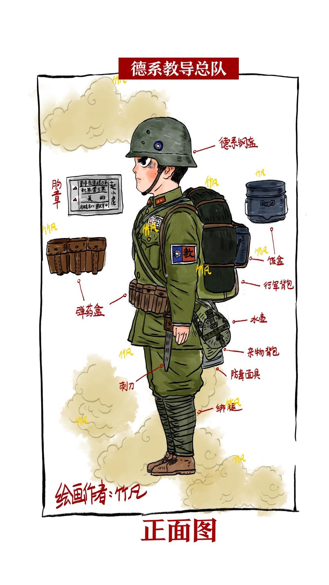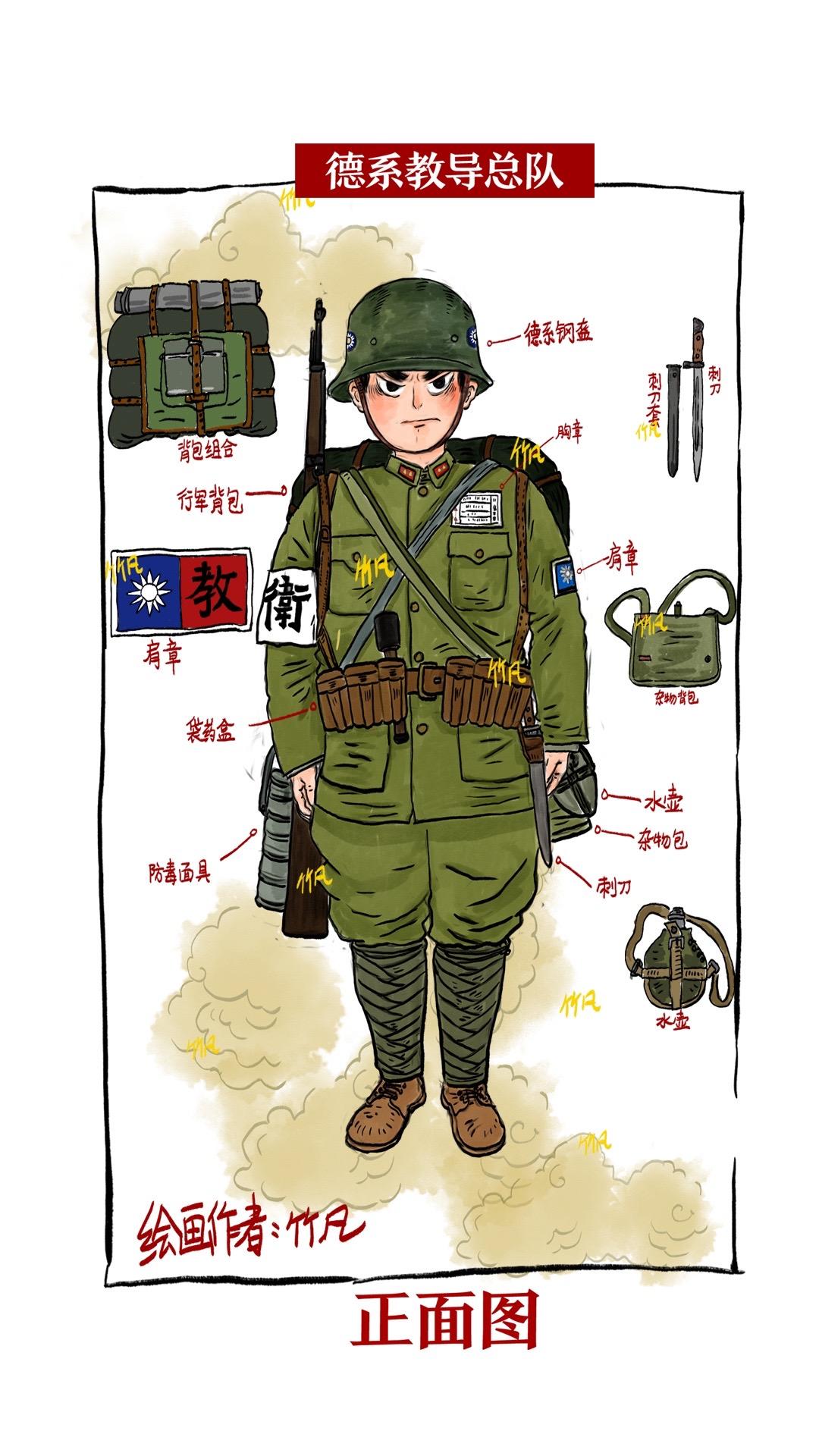 南京保卫战中的教导总队。内容以南京保卫战为背景下,绘制的德械师—教导总队的整体装备样式级面貌。开始于1930年,后续由德国军事顾问指导训练并组建,在后续抗日战争—淞沪会战、南京保卫战基本损失殆尽。