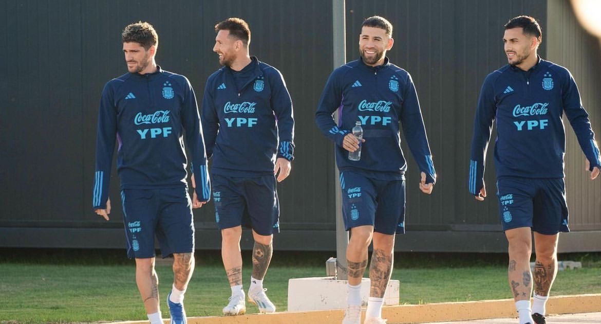 阿根廷今日份的训练,德保罗和梅西一起好开心的样子[doge]