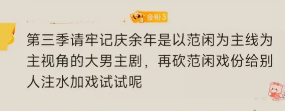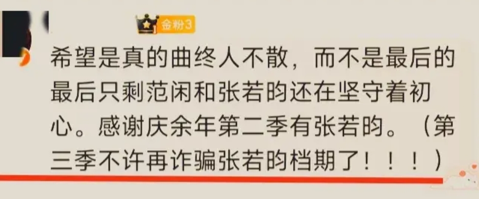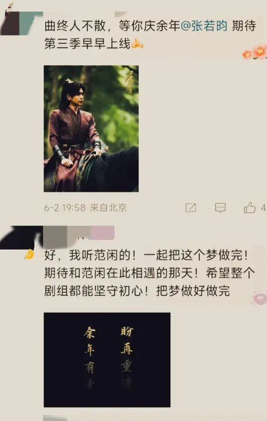 而在第一、二季中,男主角张若昀的表演受到网友一致好评,把原著中的范闲演活了,有网友在评论区留言:张若昀天选范闲,希望第三季能够继续看到他的精彩表演。