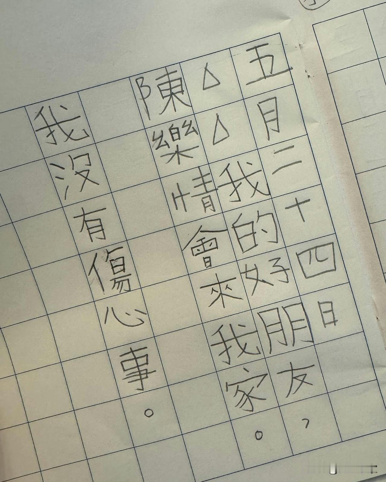六岁最红星二代写日记一手靓字获网民大赞 简单六字尽见童真本色 李璨琛与老婆梁志莹(Sophia)育有两名宝贝女儿,分别是有「最红星二代」之称,今年的6岁大女李元元(Lucy),以及2023年2月出世的细女斐斐(Sucy),身为妈咪的梁志莹经常会於社交网分享女儿的日常生活点滴。由於李元元长得非常之可爱,加上性格古灵精怪走搞笑路线,人仔细细已成功吸纳了大批粉丝,现年6岁的她在IG上坐拥近43万粉丝,且人数持续增长中。 日前李元元妈咪就晒出了囡囡的功课,是一篇日记,日记中写道:「五月二十四日,我的好朋友,陈乐情会来我家。我没有伤心事。」而李元元妈咪则留言表示:「最近阿妹都冇乜搲佢,所以连唯一嘅伤心事都冇埋??