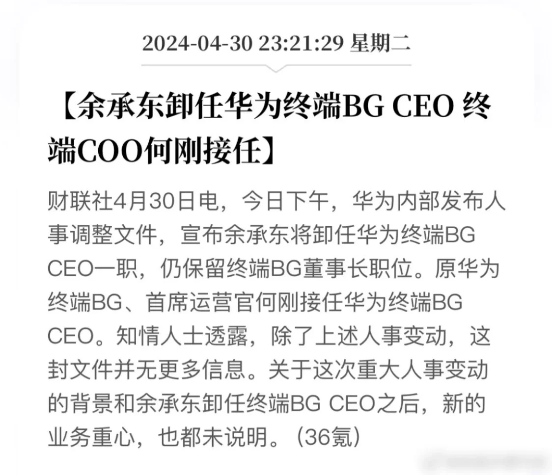 一觉醒来,风向变了!华为余承东宣布卸任华为终端CEO,以后发布会将由现在的COO...