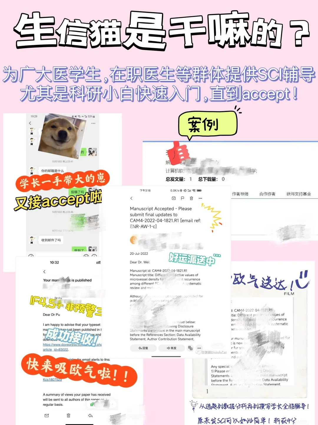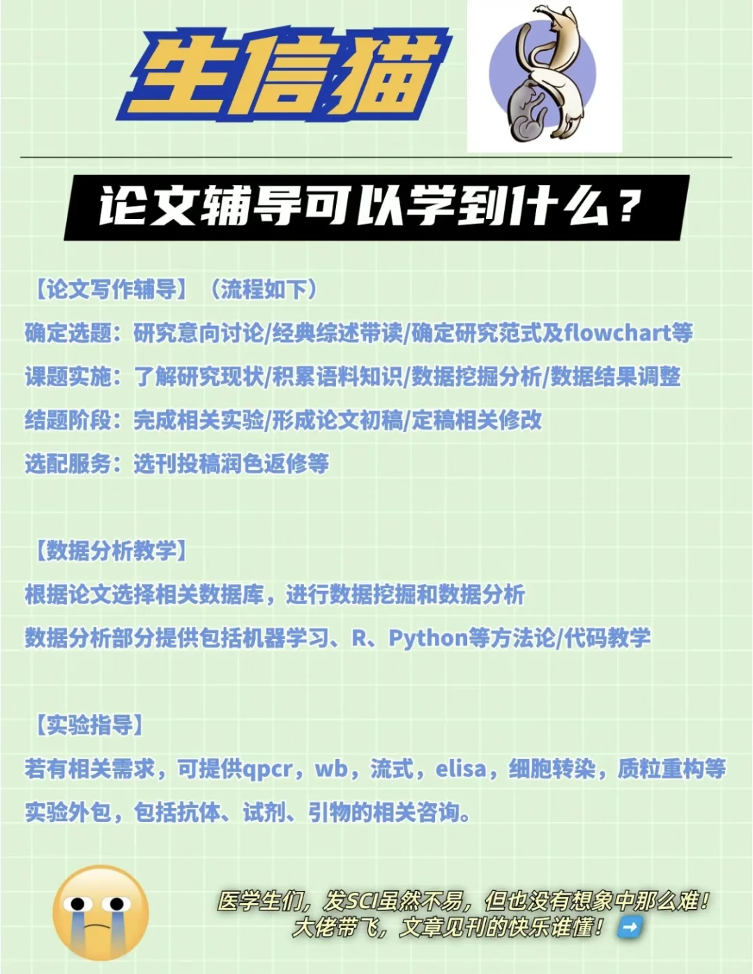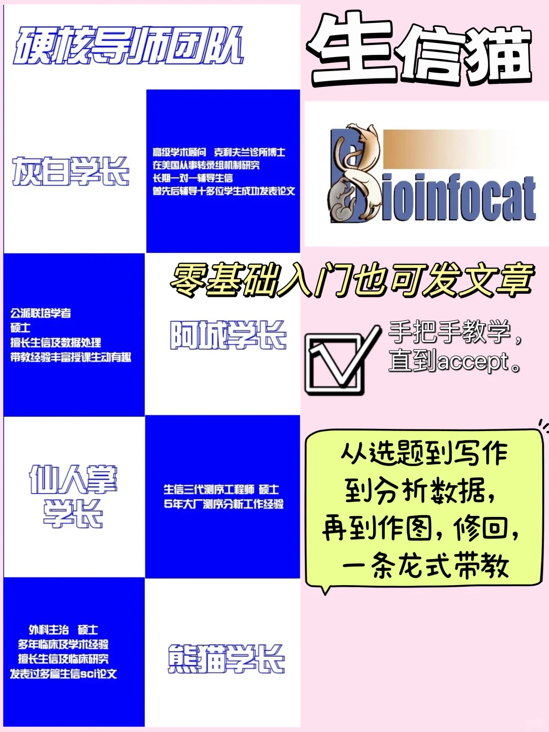 之前做过转录组测序好几次,结果都挺好的~无论是样品质控还是数据方面。 ✅样本要求: 1、测序前做预实验,pcr鉴定一下目的gene是否work,如果是补数据则做这一步,如果是没有前期研究,直接做转录组测序找靶点的,不用做预实验,直接制样即可。 2、一组至少3个重复样本,以免发生数据偶然性。 3、建议至少两个细胞系测序,尤其敏感度和目的蛋白丰度相差较大的细胞。 4、转录组测序可以是细胞,也可以是rna,建议全细胞➕trizol,自己提取rna容易降解,结果可能不是很理想。 5、选择状态很好,对数期生长的细胞去做测序。 ✅结果文档主要看哪里? 主要看数据库分析结果(go,kegg,gsea),以及质控(看副孔一致性,热图也可间接看出) ✅结果分析: 本文涉及的测序结果数据解读: 气泡图,火山图,热图,gsea图,go通路(cc,mf,bp),kegg通路(pathway涉及到的基础路线符号基本解读) ✅测序excel差异gene汇总表: 如何寻找目的蛋白发挥某个功能的相关gene?可看目的蛋白对应功能的go序列号,寻找序列一样的蛋白即可,可能就是靶蛋白。 🌈转录组测序算比较常见又简单的测序分析了,有些比较重要的样品也会去做单细胞测序~目前做图都是自己做,会用graphpad和r语言还是很有用的~ 🌈科研小白如何💨入门生信分析? 🌟首先大家可以找一些简单的学习课程入门,例如r语言可参考图中提到的r语言笔记学习,只是自学的话可能会比较痛苦,效率也会低一些。 🌟如果小白想入门且之后进阶学习代码,还是建议找老师zhi导,学习相关课程~【生信猫】的特点是手把手教学,听过一些,体验感不错👍 🙌🏻科研小白想入门,或者医生有发文章的需求,研三还没文章的医学生们等人群,很适合‼️ ✅从热门选题到分析数据,到写作,再到科研绘图,选刊,发表,审稿意见修回…最后到accept,都全程指导👍 ☄️【生信猫】有生信相关,meta分析,还有孟德尔随机化等课程,可以安排~[赞R]
