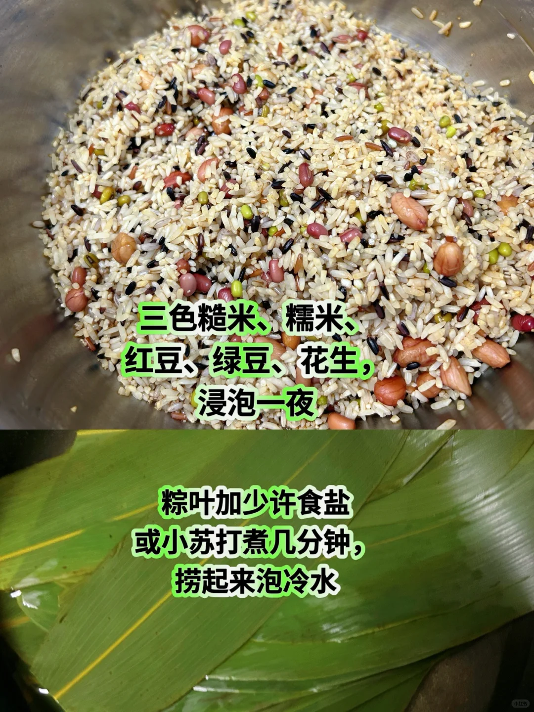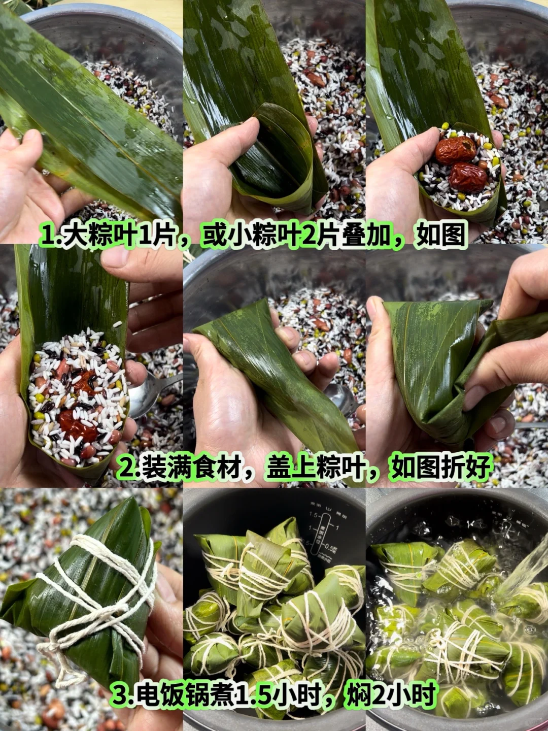 八宝甜粽子,三色糙米、糯米、红枣、红豆、绿豆