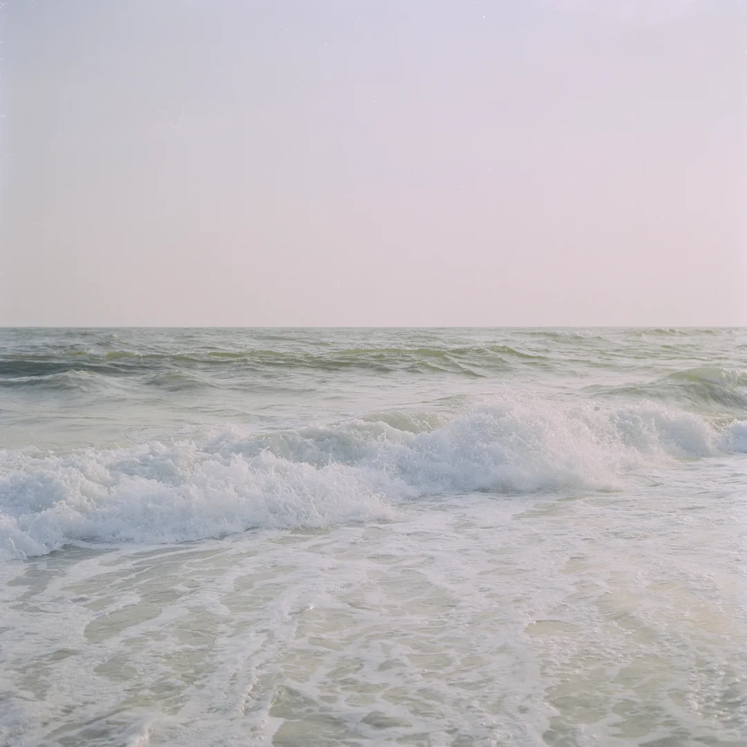 海崖上的人在眺望,沙滩上的人在奔跑,留下深浅不一的脚印,像一首跳跃的诗歌。