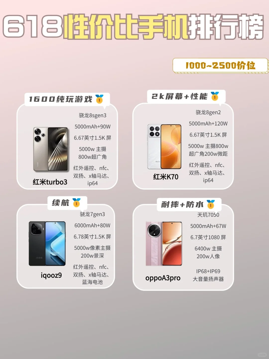🥉红米turbo3|红米k70|iqooz9|oppoA3pro