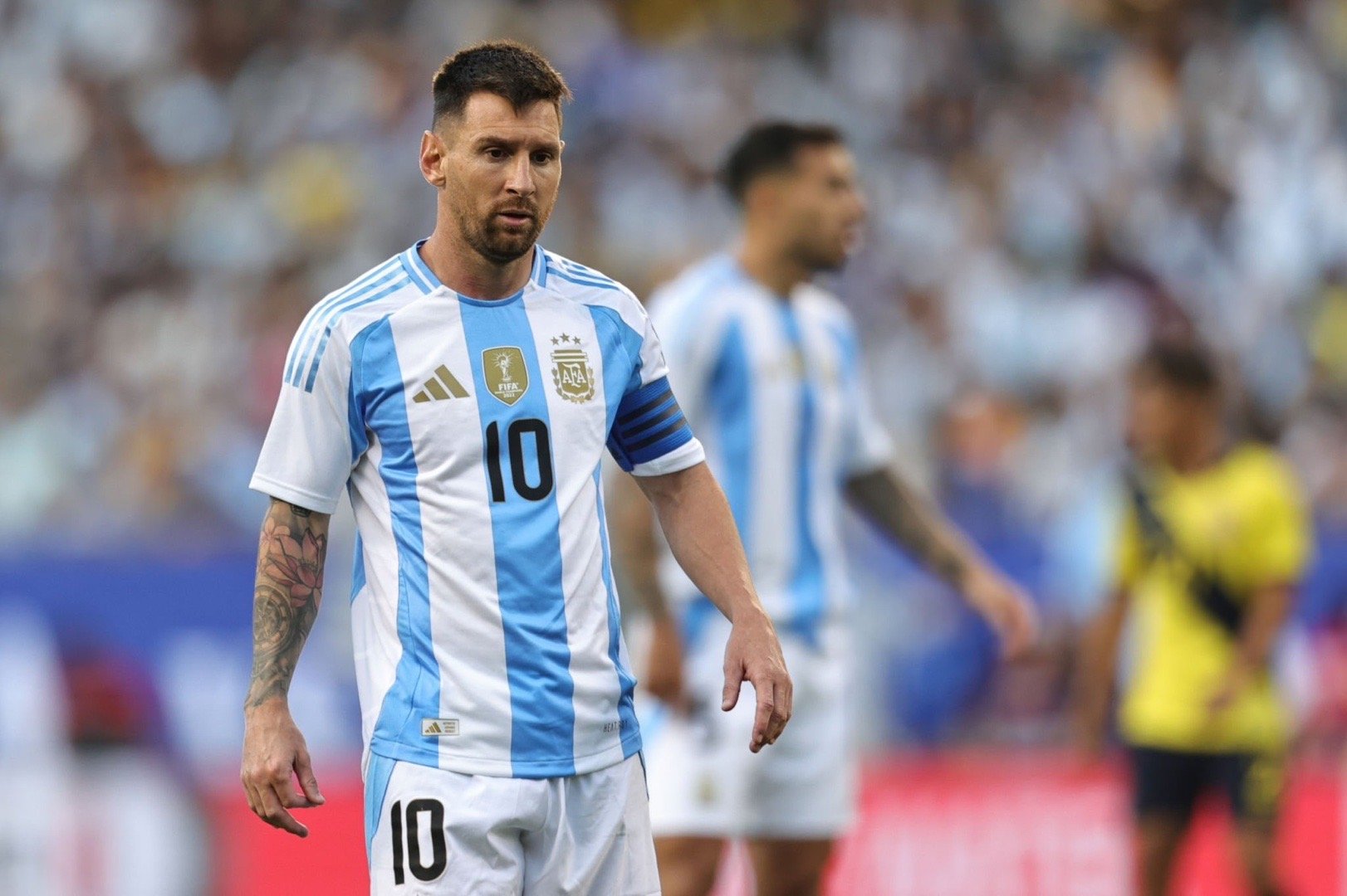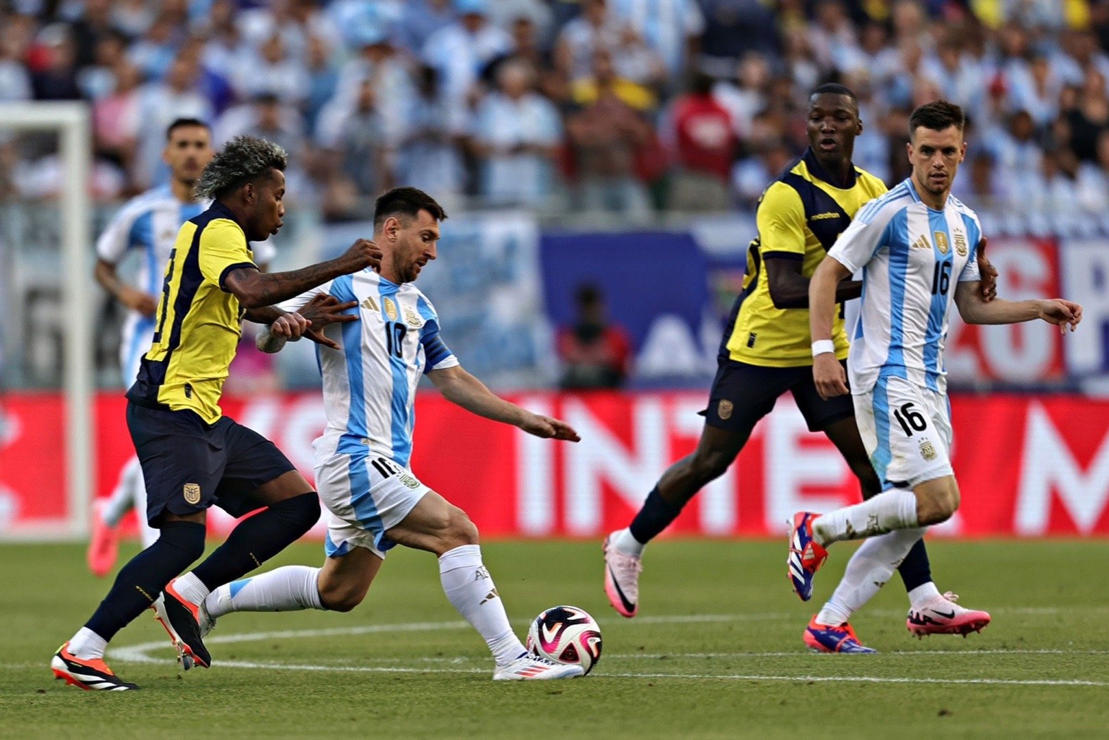 全场比赛结束!凭借迪马利亚上半时的进球,阿根廷1比0厄瓜多尔!梅西下半场替补登场,带来节奏变化,制造了几次不错的机会,也受到了对方的重点照顾!南美内战,没有受伤,慢慢恢复,一切着眼于美洲杯![可怜][可怜][可怜]