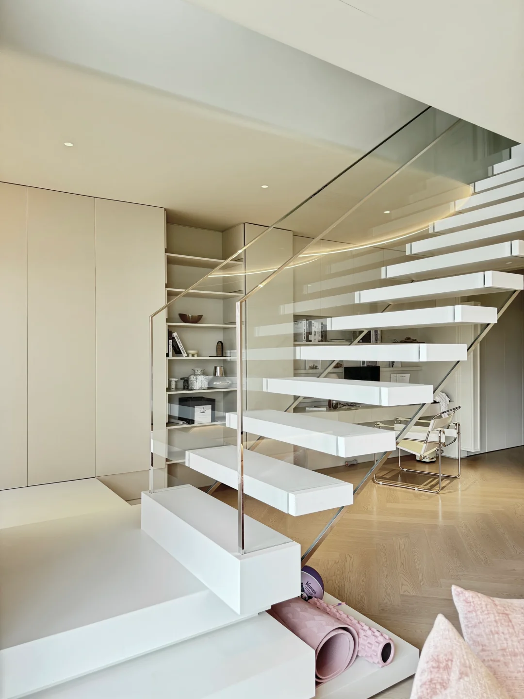 轻法式小家软装搭配太可了!通透玻璃楼梯成家里出片王,温州新希望天麓氧气感满分