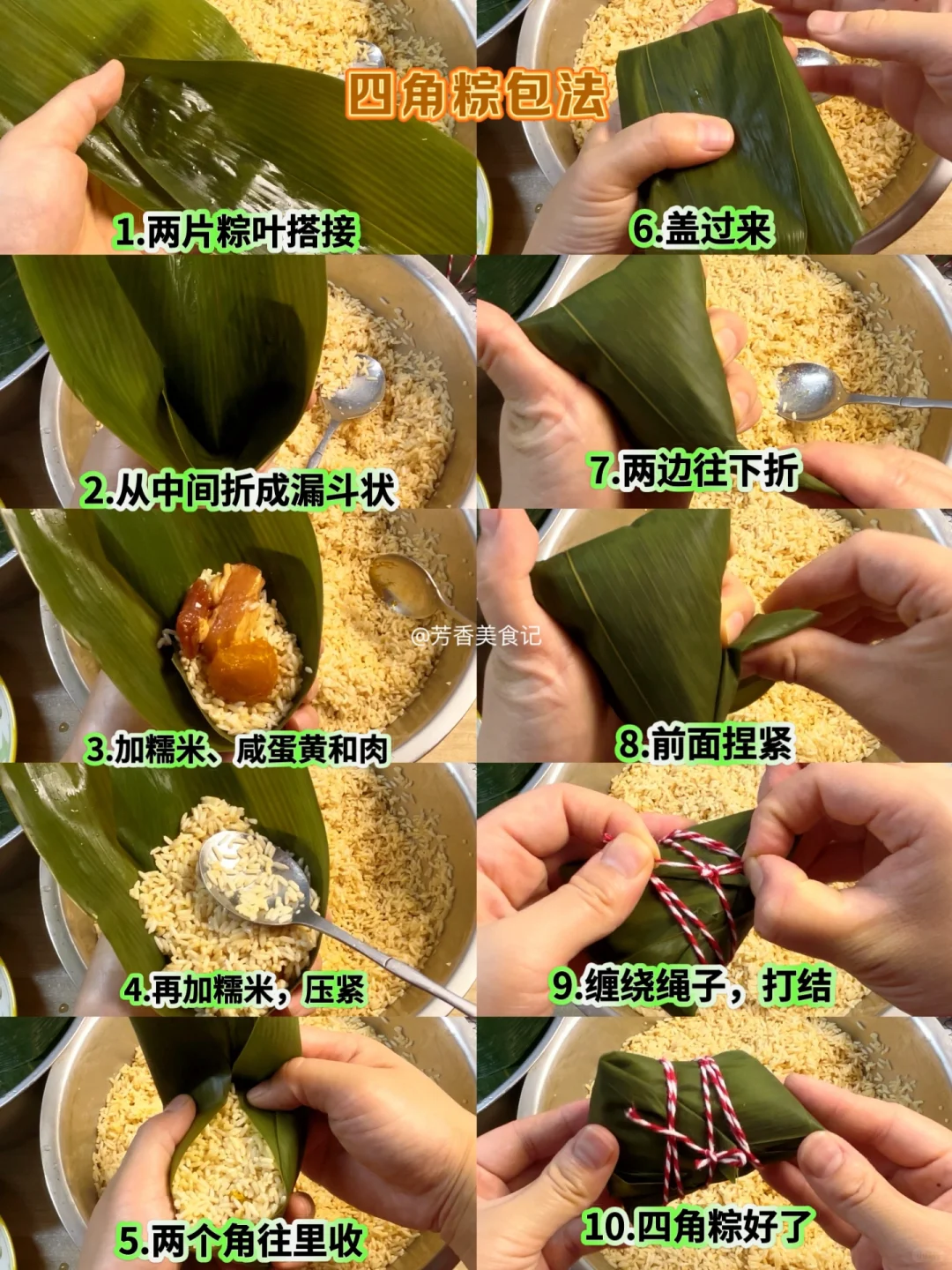 咸蛋黄肉粽的详细做法教程,咸鲜美味四角粽