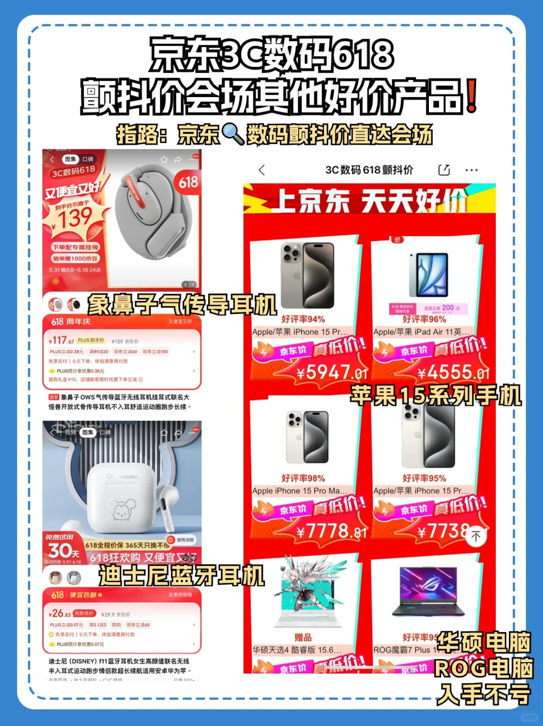 京东🔍数码颤抖价直达会场,迪士尼蓝牙耳机、象鼻子气传导耳机、苹果15手机等也是地板价,大家快去买!