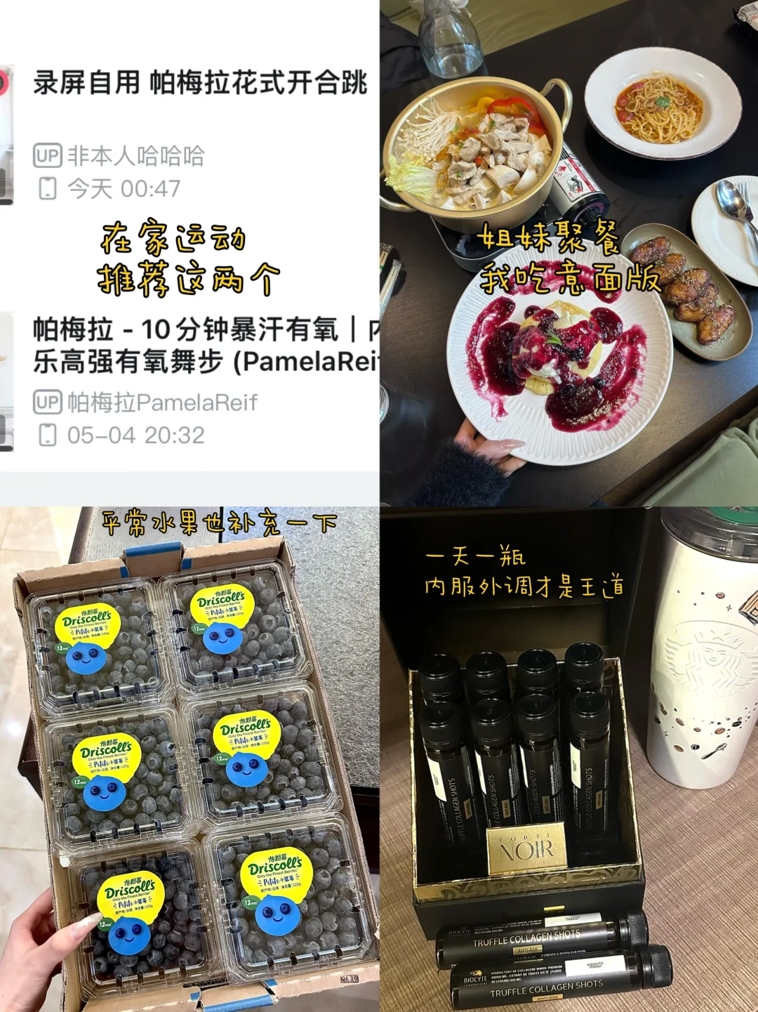 除了运动和饮食上我还会喝一支胶原蛋白肽来补充长期熬夜流失的胶原蛋白