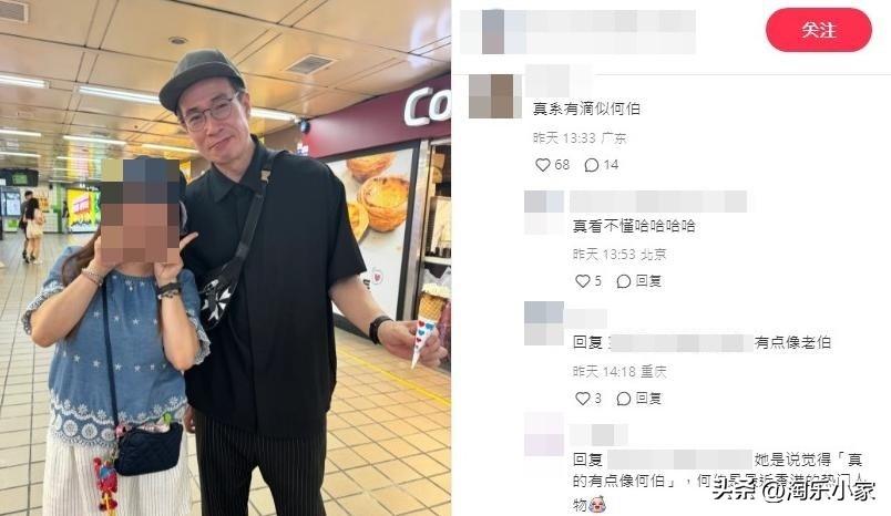 53岁视帝外游被野生捕获因一样嘢被指激似何伯 娇妻竟同何太同龄 现年53岁的视帝陈豪早前忙於拍摄《企业强人》及《执法者们》,连生日都要在工作中度过,近日难得有假放就与太太陈茵媺去韩国旅行,期间更被网民野生捕获,不过造型却被指激似全城爆红的风云人物何伯。 连日来已有网民在小红书上载巧遇陈豪与陈茵媺的合照,当时已有网民指陈豪手上惊现老人斑,老态尽现。昨日再有网民野生捕获陈豪夫妇,陈豪头戴帽子搭配黑色恤衫及直间西裤,打扮年轻有型。不过有网民留言表示:「真系有啲似何伯」、「陈豪好似何伯」,随即引起其他网民热烈讨论,并指:「哈哈哈,我第一感觉也这样,不敢说」、「唔系有啲,超级似」。 豪在两张照片中分别戴上眼镜和太阳眼镜,与何伯平日的打扮有几分相似。有不少人认为只是陈豪造型相似才似何伯:「何伯啊,好红,何伯最锺意戴呢种鸭舌帽」、「可能是帽子的原因」。