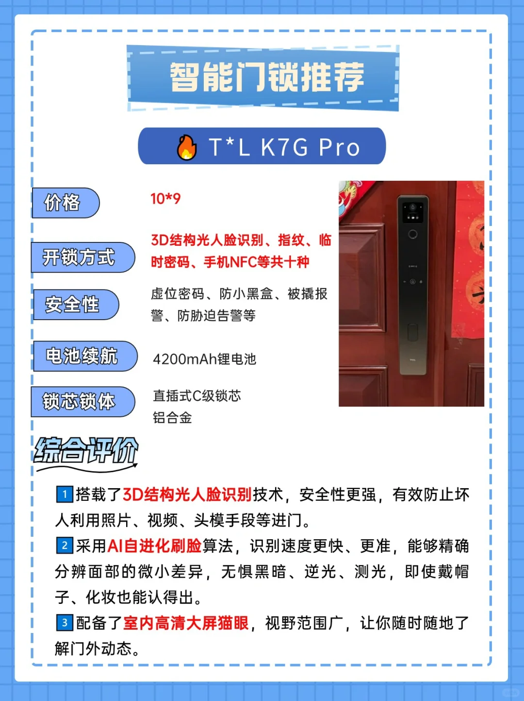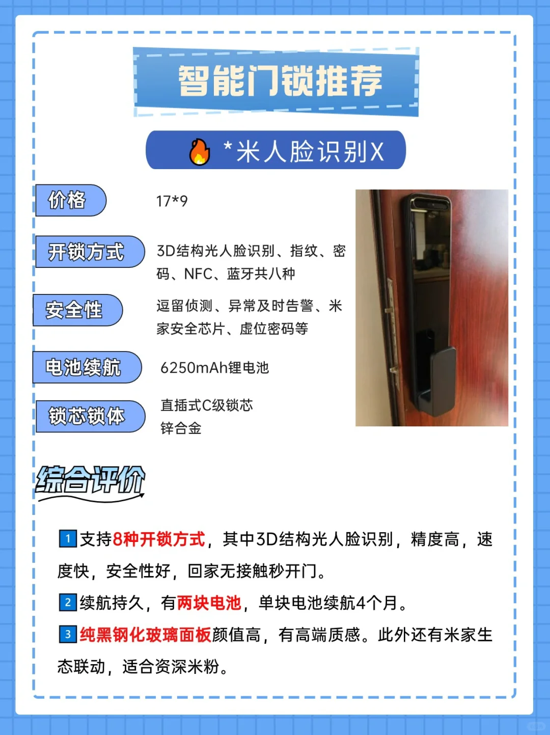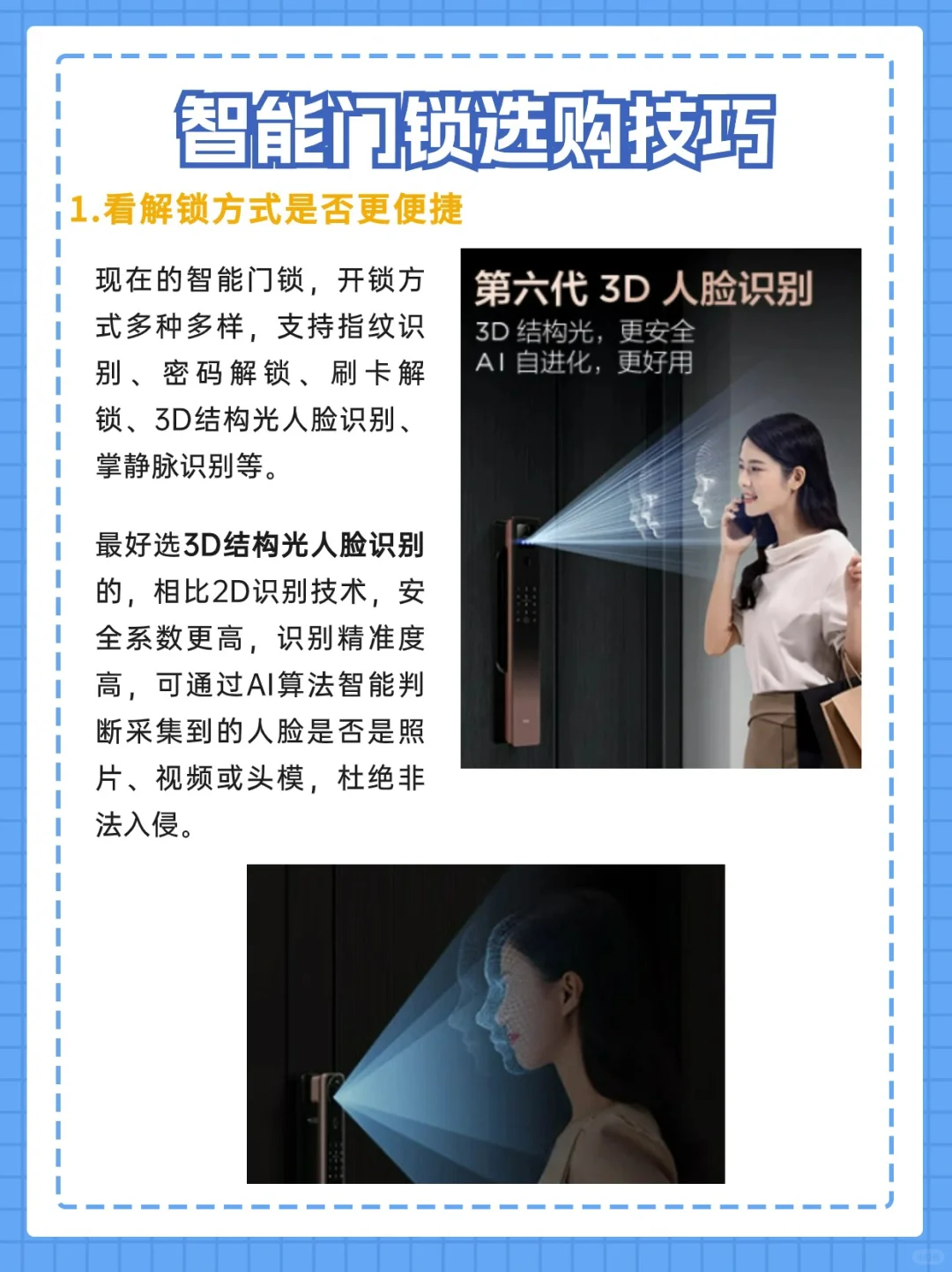 最好选3D人脸开锁方式的,更安全、精准,杜绝非法入侵。