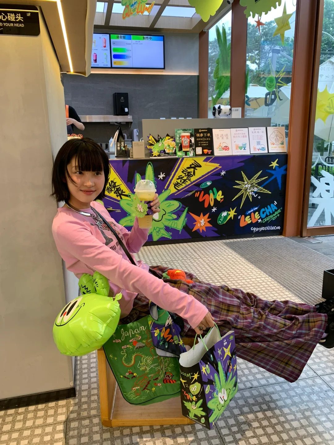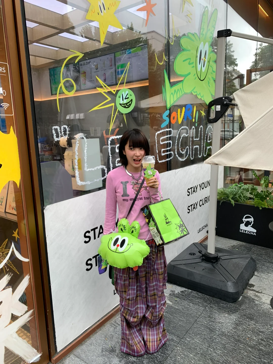 最后,在上海的宝宝们可以去金地新华道的乐乐茶,涂鸦风整体设计,非常出片,配上可可爱爱的周边,有口水巾啦,炸毛梳啦,我不信不心动~~