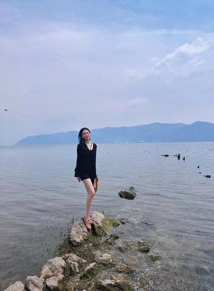 洱海之畔,张馨予展现了她健美的身材和优雅的气质。阳光洒在她身上,映衬出她白皙的肌肤和修长的双腿。她时而倚在电动车上,享受着微风的轻拂;时而站在水边,眺望着波光粼粼的湖面。每一个瞬间都充满了诗意和浪漫,让人不禁为之动容。