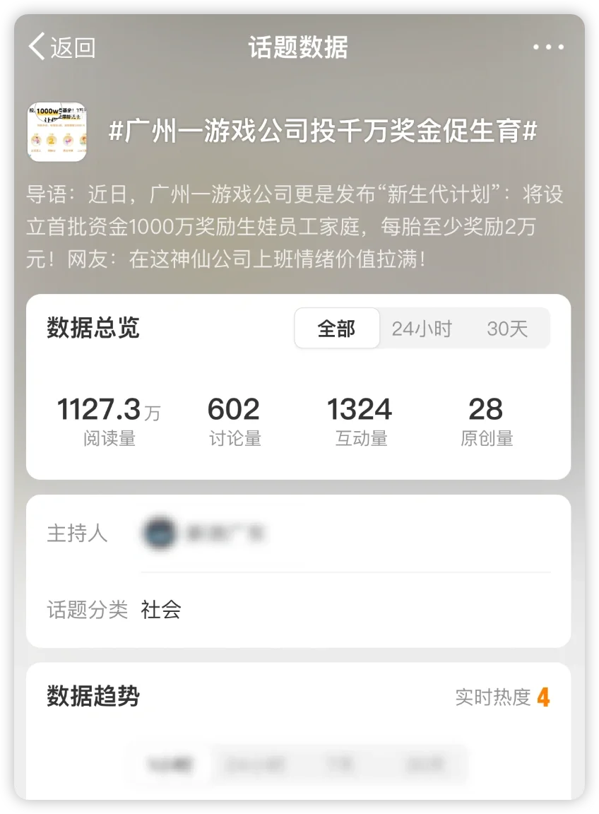 近两年行业里除了“出海”、“小游戏”、“年龄焦虑”之外,好像很久没听到卷员工福利的声音了。希望三七互娱的生育基金能给广州,乃至全国游戏公司打个样,共同提升行业员工福利。