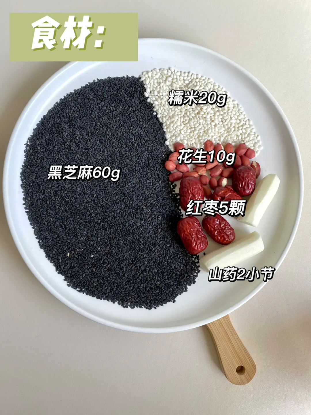这这这!这!不就是我梦中的黑芝麻糊嘛! 跟冲泡的完全不一样哦!香香甜甜的~ 因为我老是熬夜😭…我妈妈就经常做这个黑芝麻糊给我当早餐!香浓顺滑!贼香!对头发贼友好!👍 经常熬夜👩🦲的姐妹赶紧喝起来… 📝食材:黑芝麻60g、糯米20g、花生10g、红枣5颗、山药2小节 ✔️做法:食材冲洗干净放入破壁机,倒入600ml清水,豆浆模式打25min即可 一口醇香浓郁!早上来一碗比啥都顶哦!! 我妈还放了山药一起,比脾胃也很友好哦!!