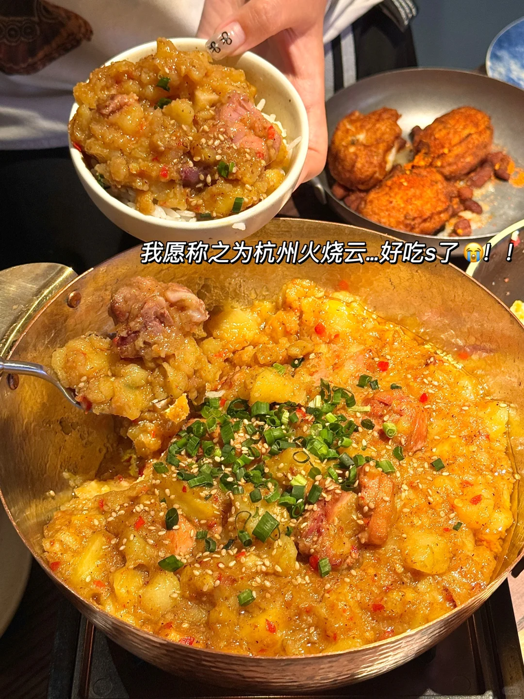这个铜锅油焖鸡 黏黏糊糊的拌上大米饭 真的不要太好吃了…山野包谷粑 奶香不腻的也好绝!还有毛辣果、怪噜饭、过桥米线…每一道都好看又好吃!!
