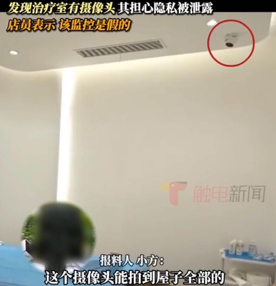 广东广州,女子来到一家美容机构做私密脱毛,不料,在治疗时做项目时,却突然抬头发现上面有一个摄像头,这让她担心自己的隐私被拍摄泄露,虽然店家解释是假的,但回到家后,女子却越想越后怕!找到媒体一起来讨要说法